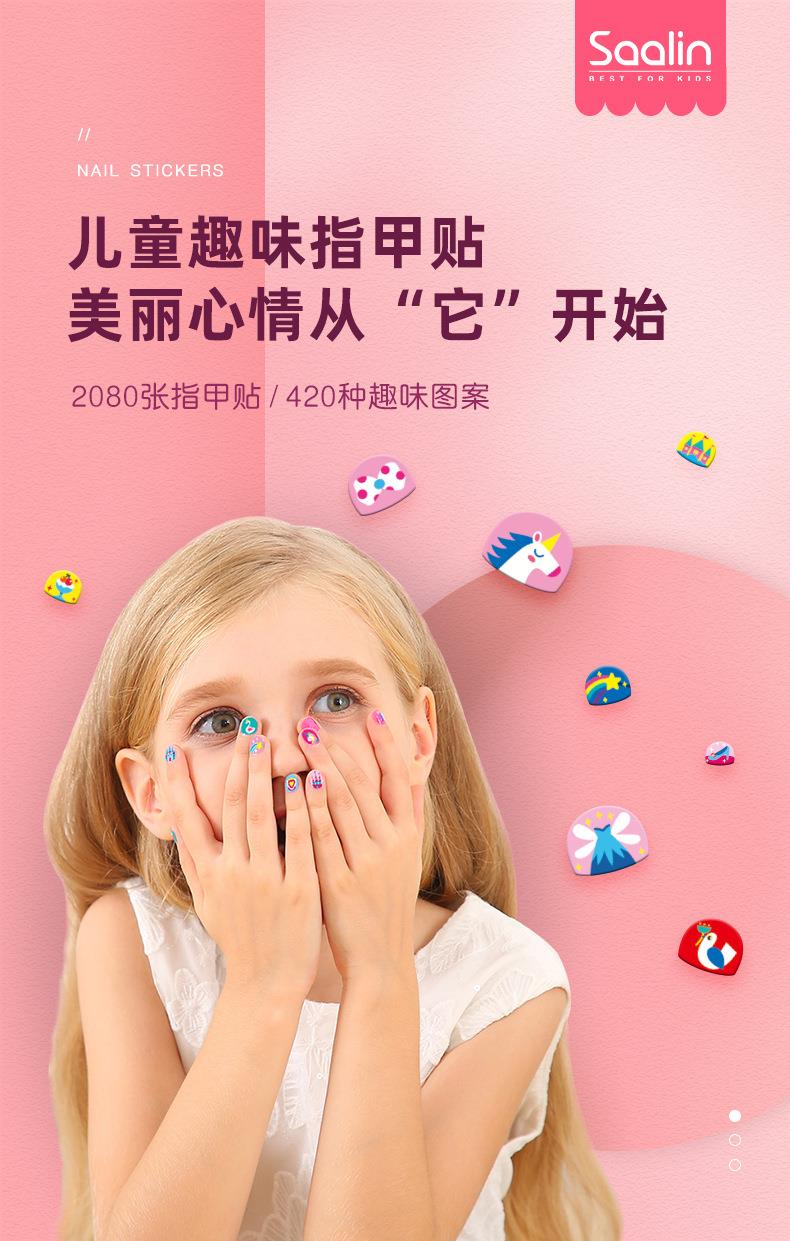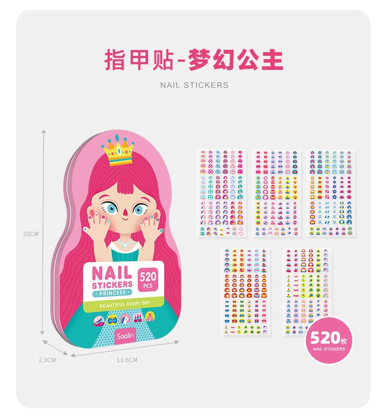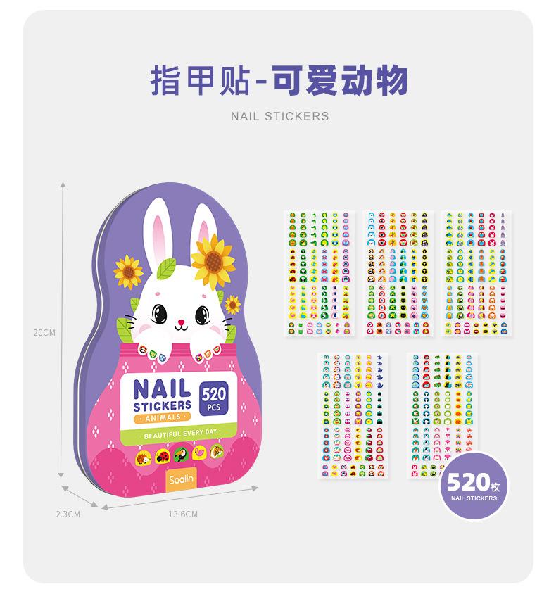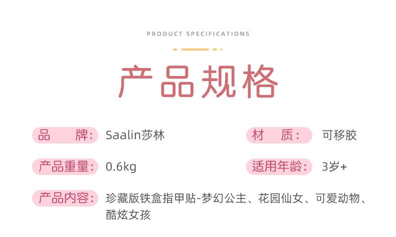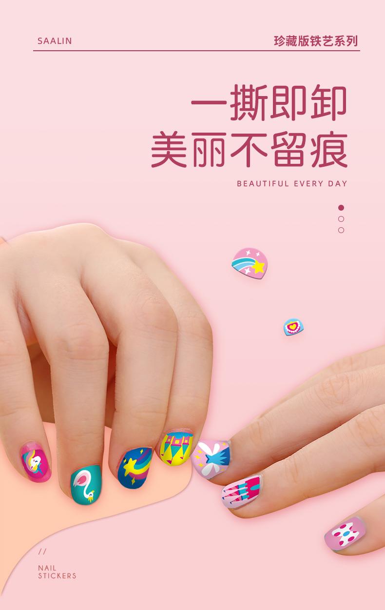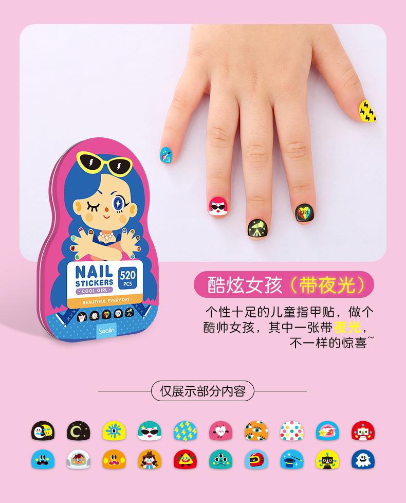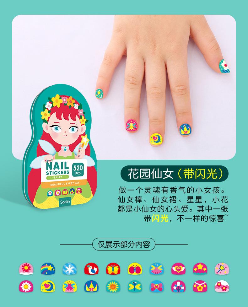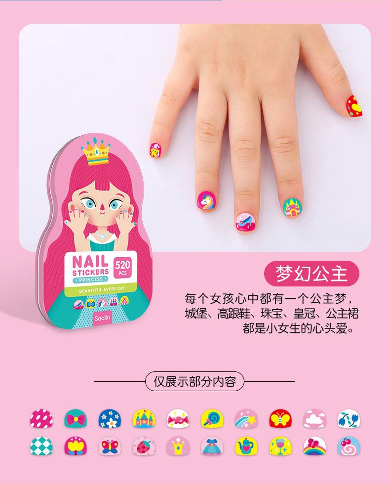 Saalin莎林儿童时尚指甲贴片套装幼儿趣味贴铁盒套装