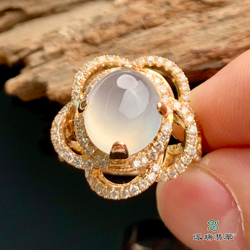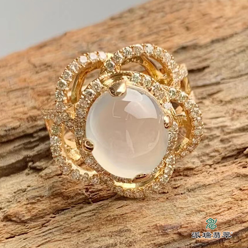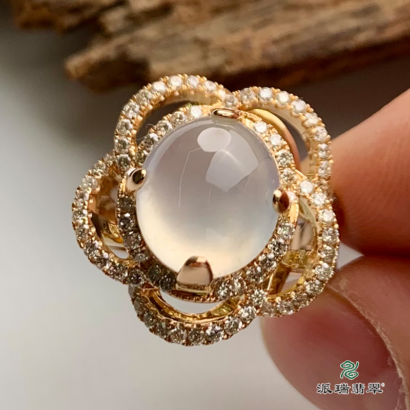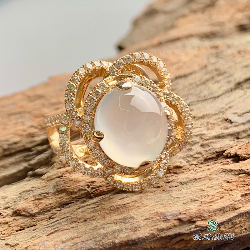 派瑞翡翠 18k金翡翠戒指 冰种 无色