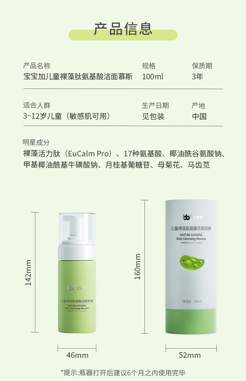 宝宝加 儿童裸藻 氨基酸洁面慕斯 100ml