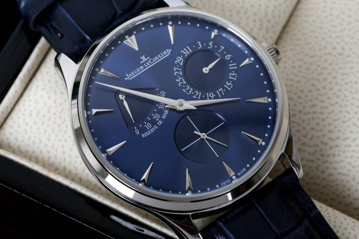 [积家小丑系列 ] 机械表尺寸:40MM。立体弧形镀银表面,批花钻石铂金刻度,淬火钢蓝指针,拥有原装同样的功能,动能显示,指针日历,小秒盘,意大利小牛皮搭配原装折叠扣