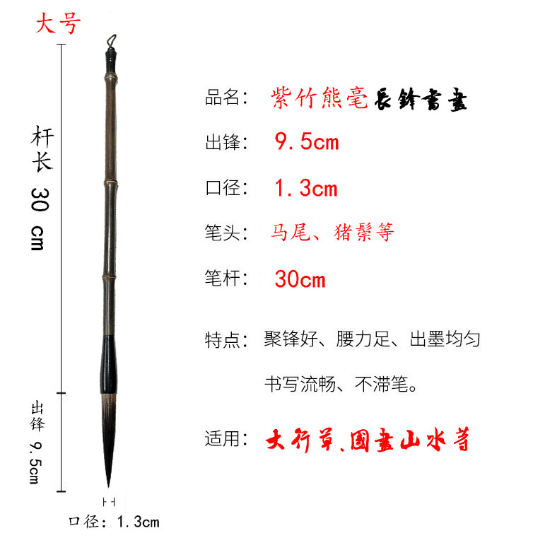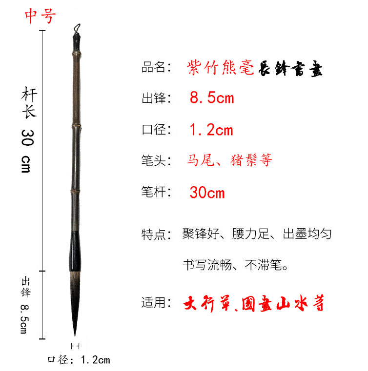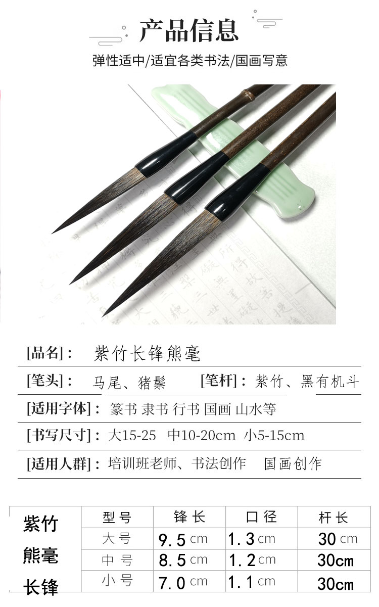 紫竹长锋熊毫-篆书、隶书、行书、国画、山水画等。