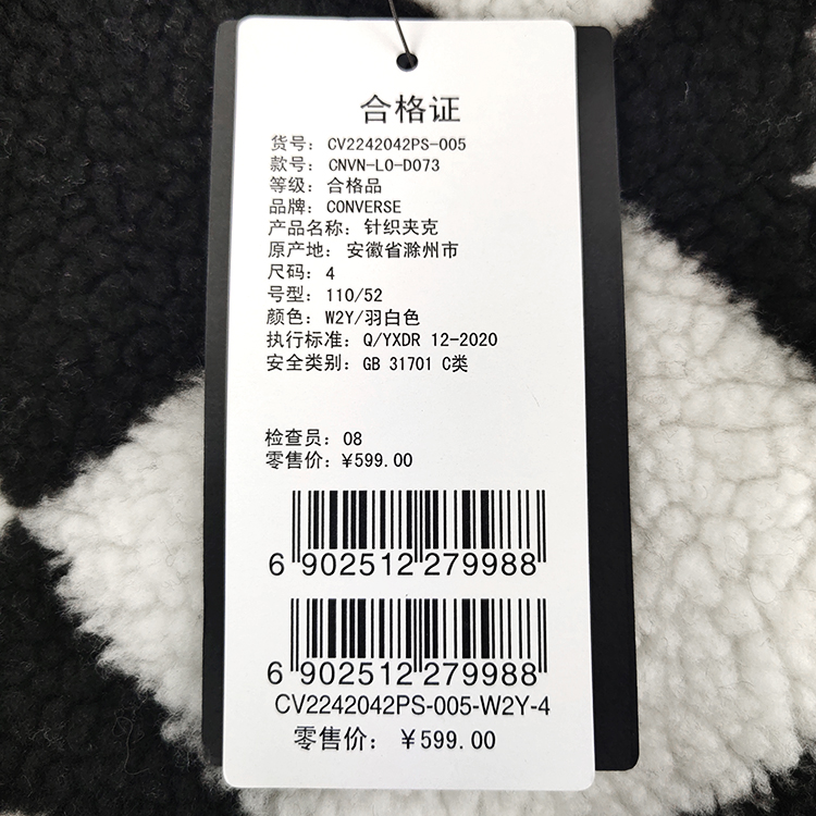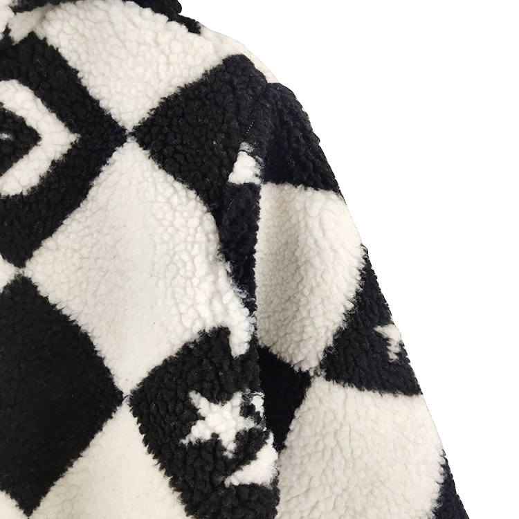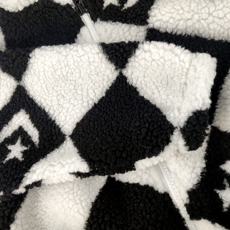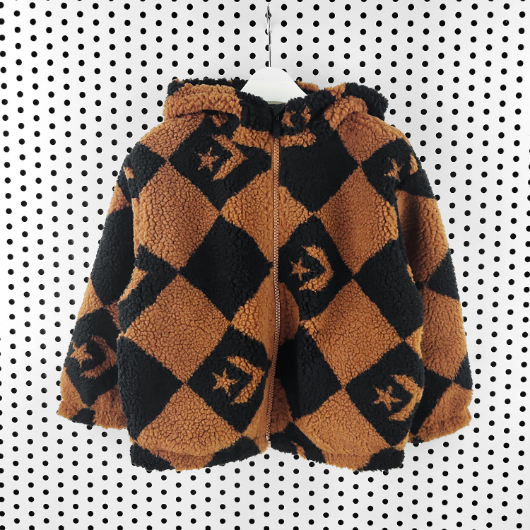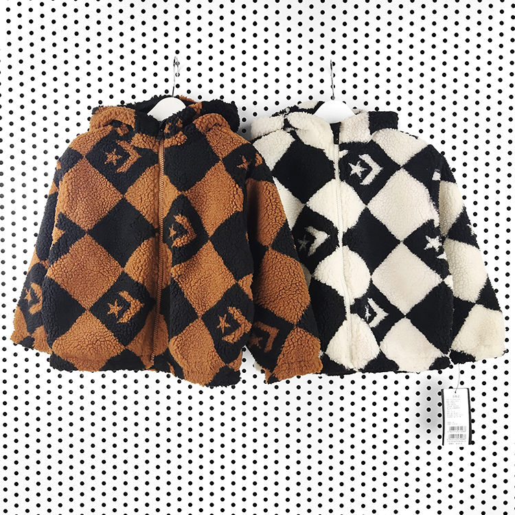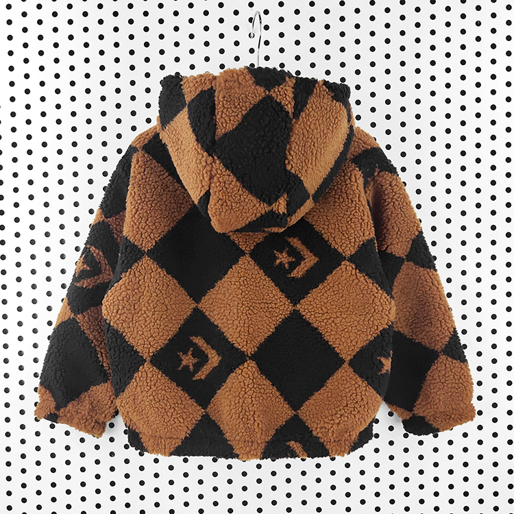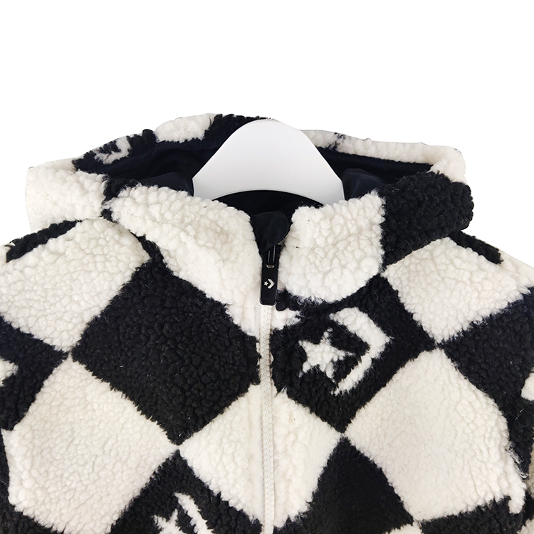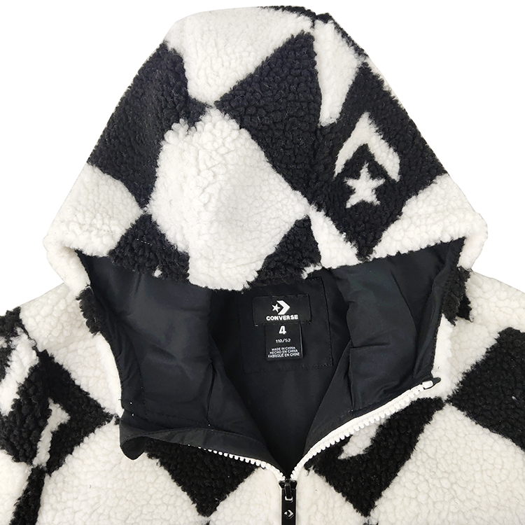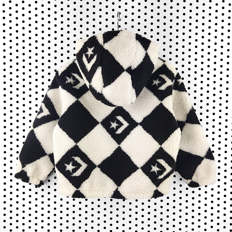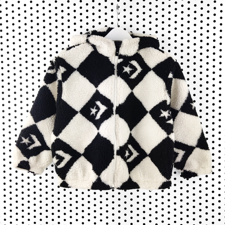 Converse匡威童衣童衣冬黑白拼色棋盘格颗粒绒连帽外套针织夹克 CV2242042