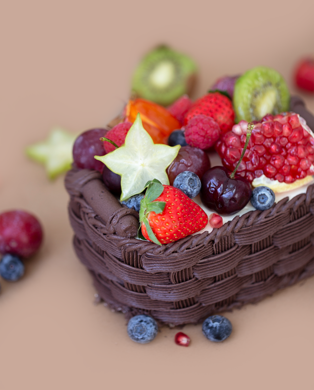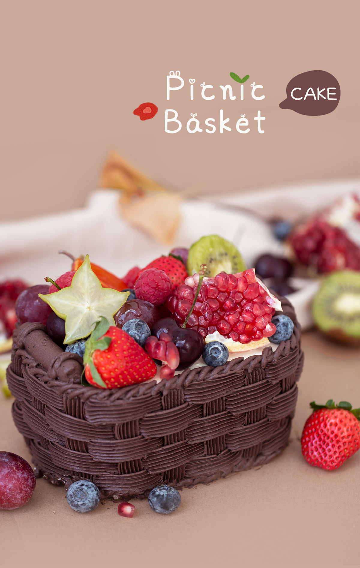 「一篮丰收,一揽花季」鲜果味野餐篮蛋糕