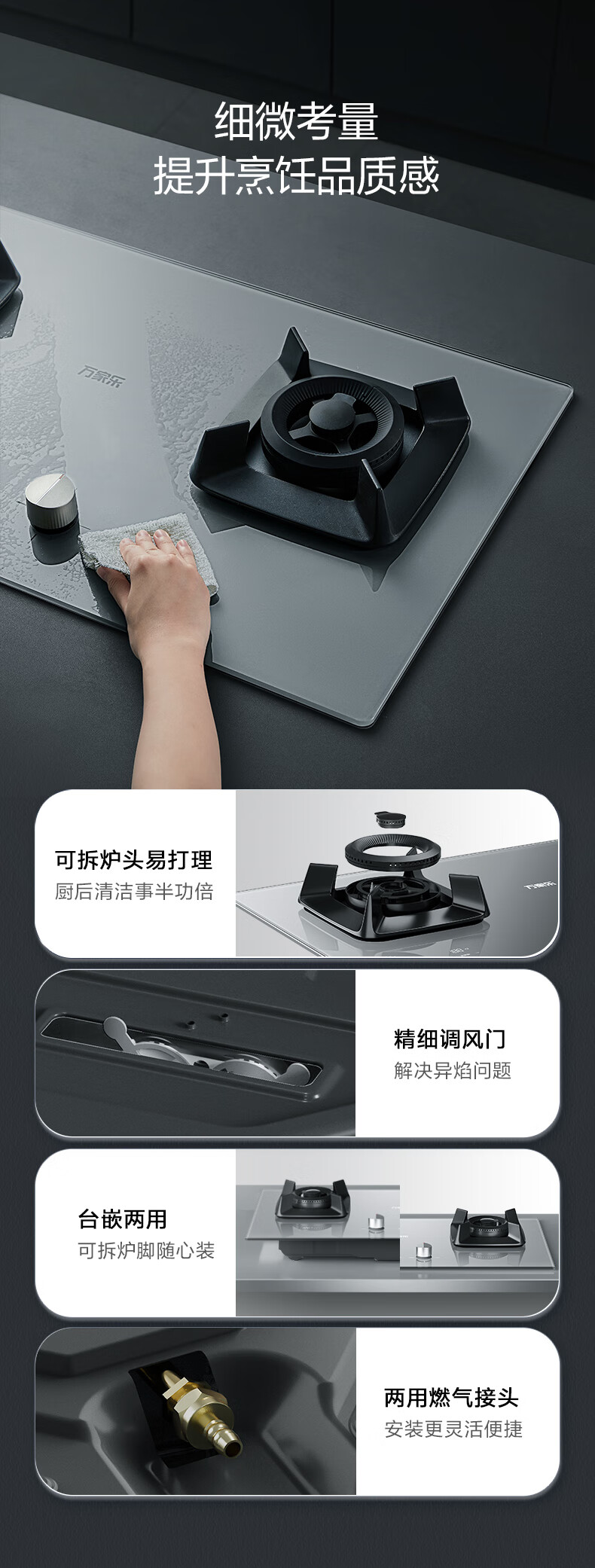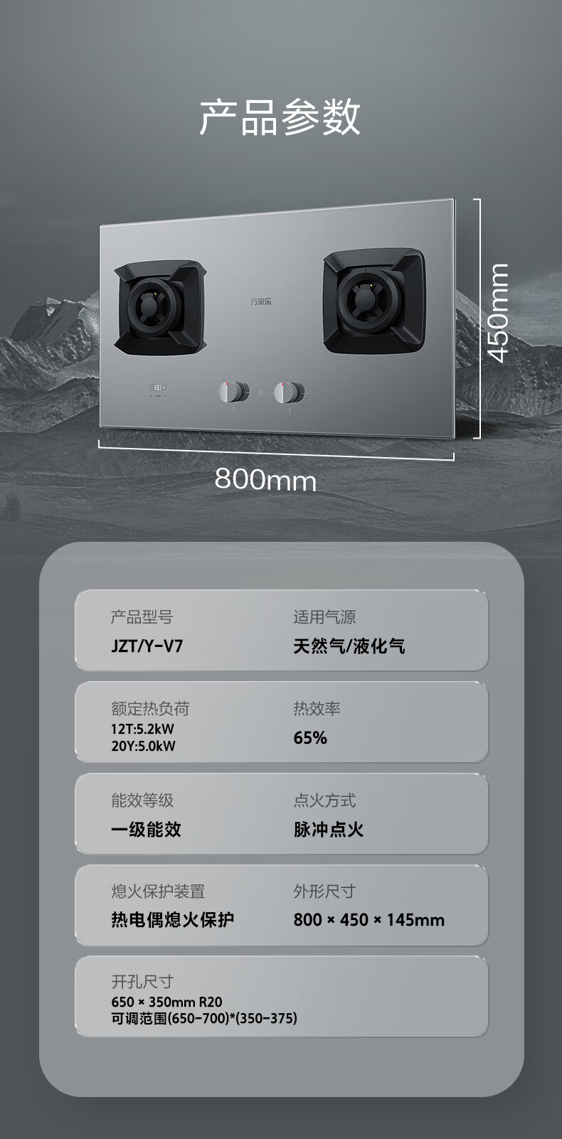 万家乐精灶百味燃气灶JZT-V7 玻璃面板 天然气