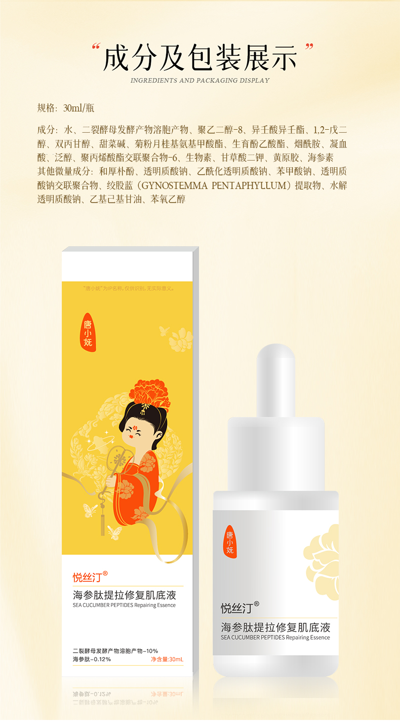 悦丝汀海参肽提拉修复肌底液 保湿修护紧致弹嫩护肤精华液30ml/瓶