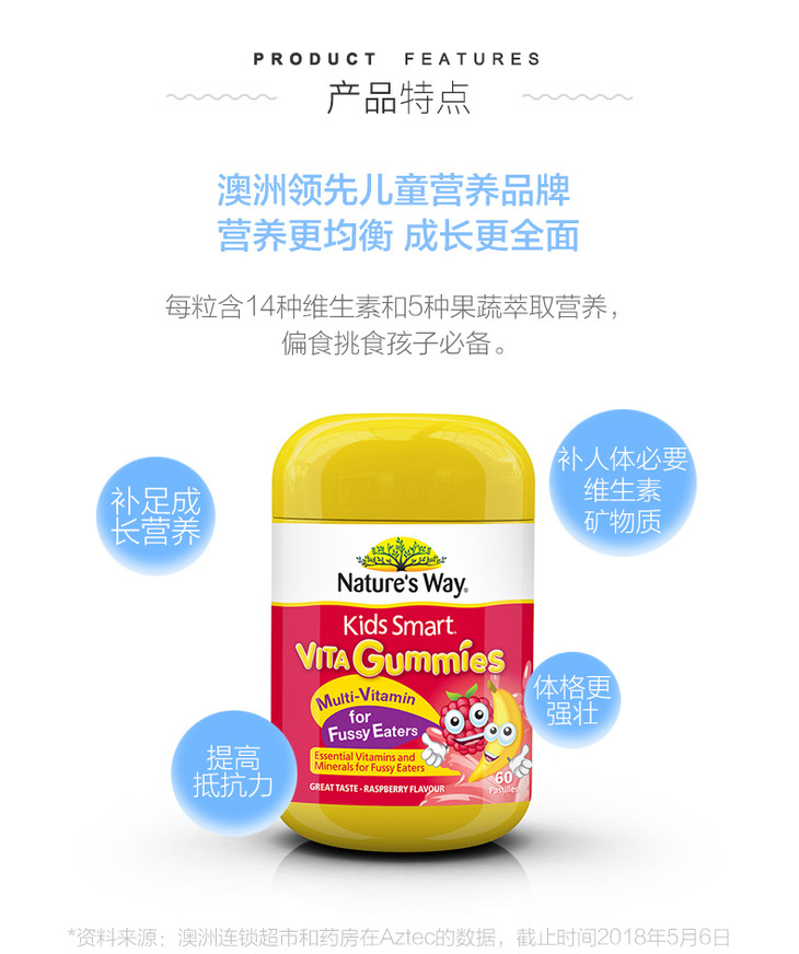 澳洲Nature’sWay/佳思敏儿童复合维生素挑食改善配方软糖/60粒