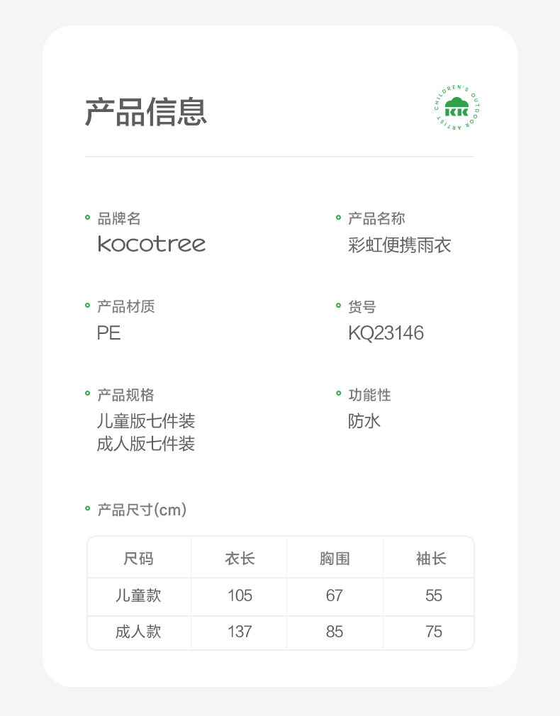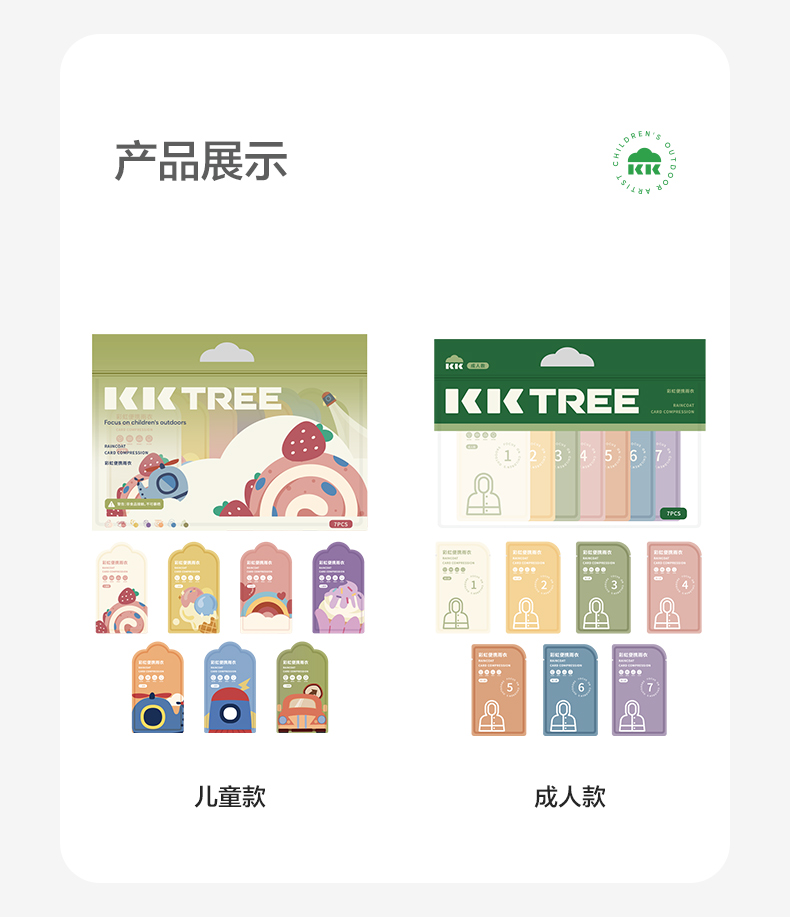 KK树一次性卡片雨衣便携式压缩雨披儿童全身防水加厚长款成人雨服