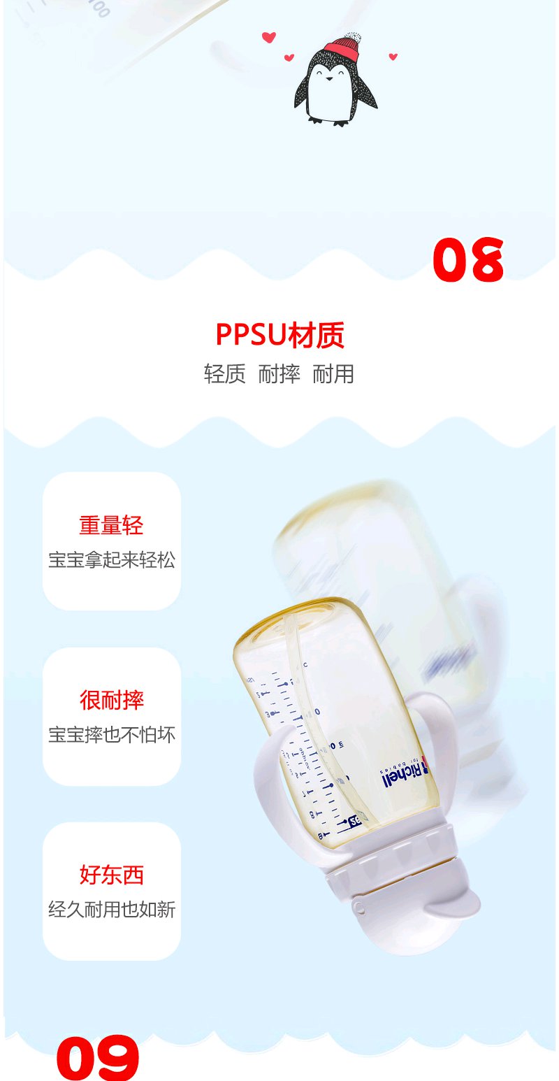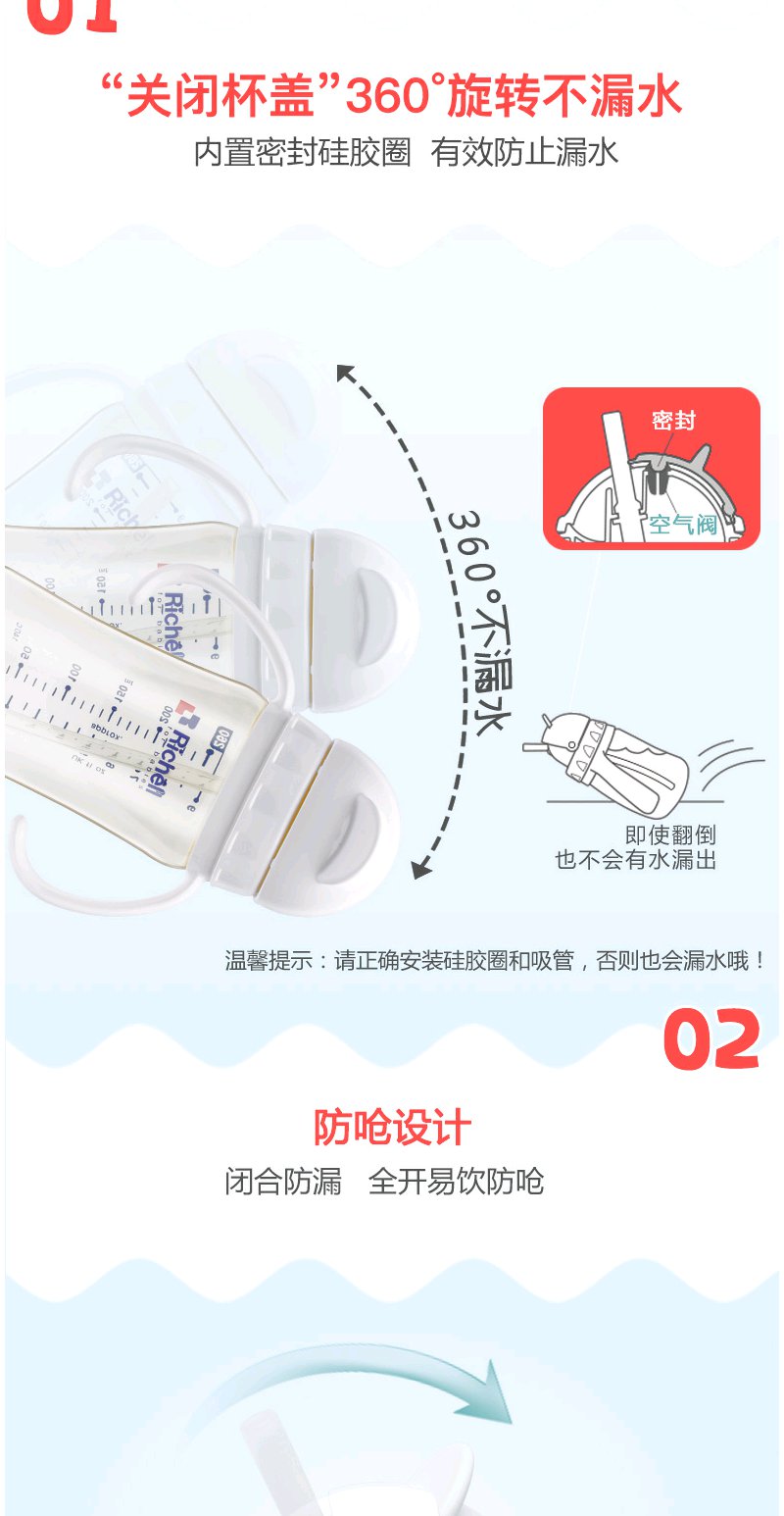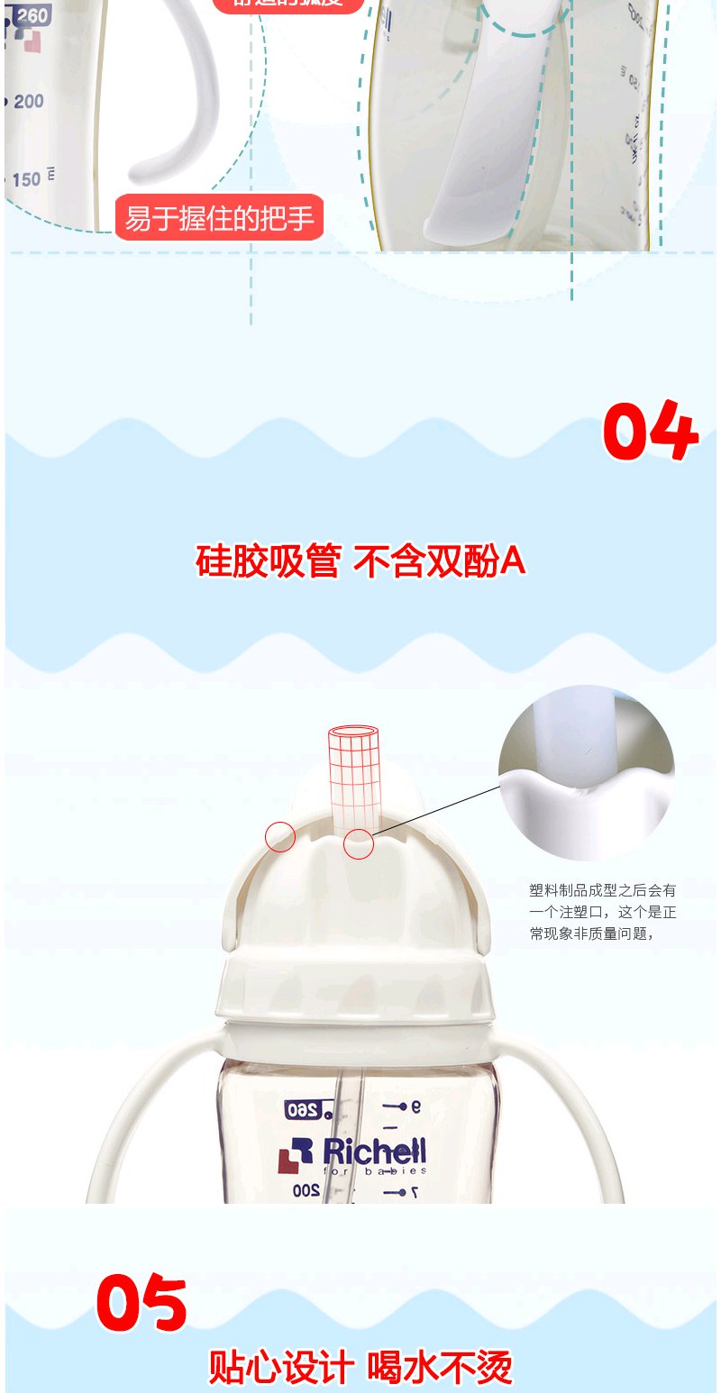 Richell利其尔ppsu儿童吸管杯防摔学饮杯宝宝水杯婴儿吸管奶瓶