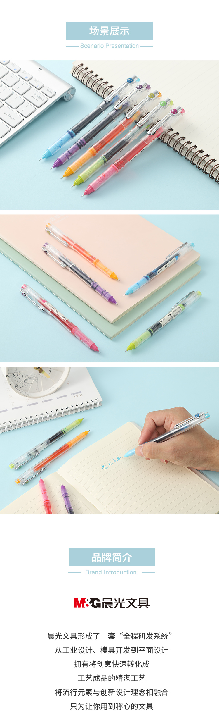 晨光本味直液式ARPM2401彩色走珠笔单支速干大容量复古色0.5学生用做笔记手账专用水笔简约签字笔