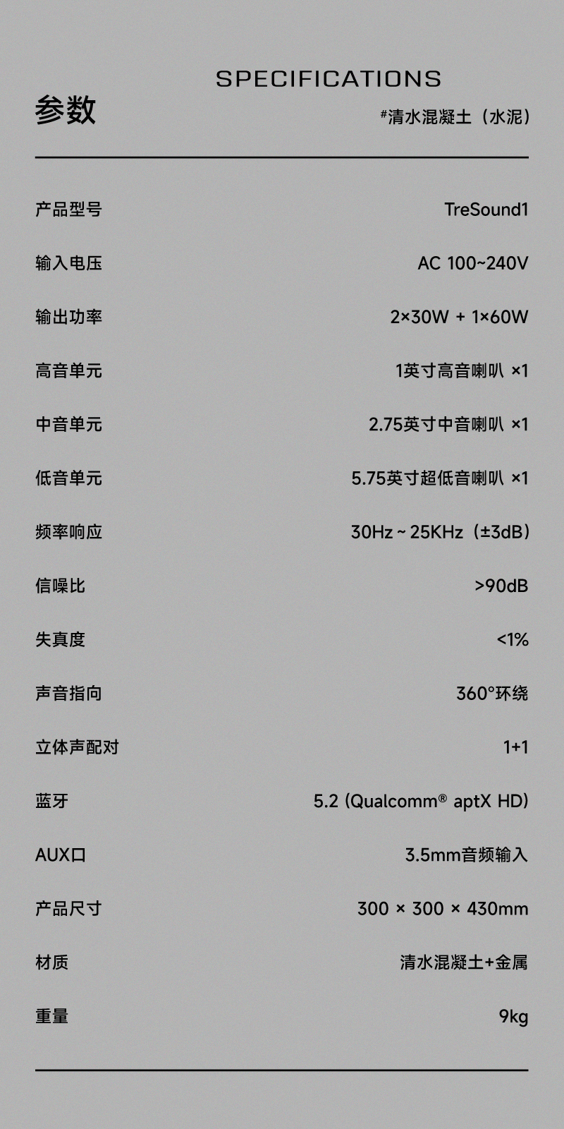 TRETTITRE 水泥音响三分频HiFi高音质蓝牙音箱2025新款