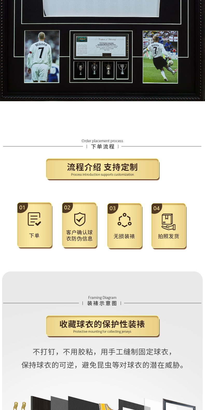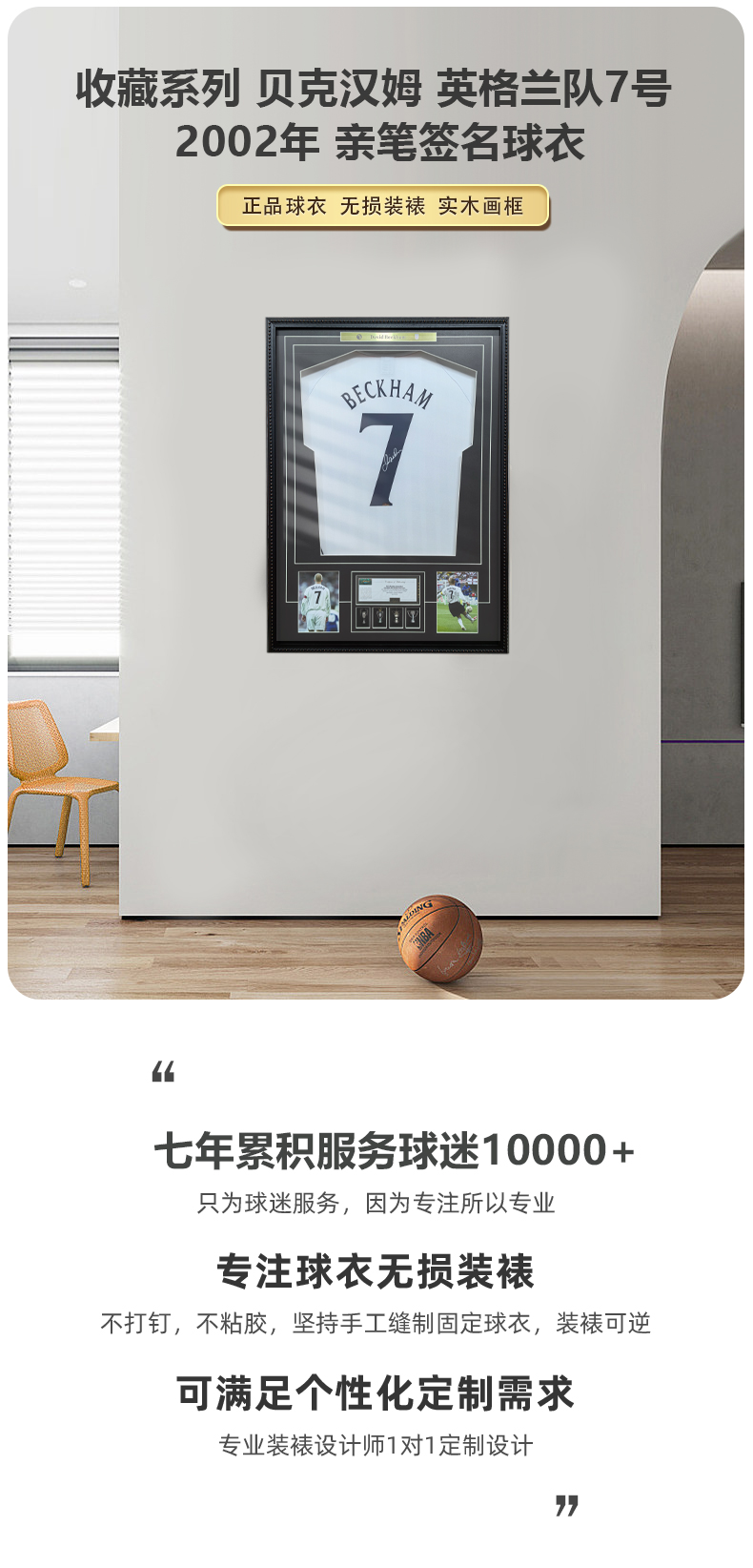 收藏系列 贝克汉姆 英格兰队7号 2002年 亲笔签名球衣