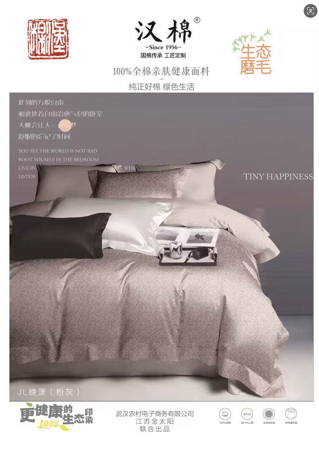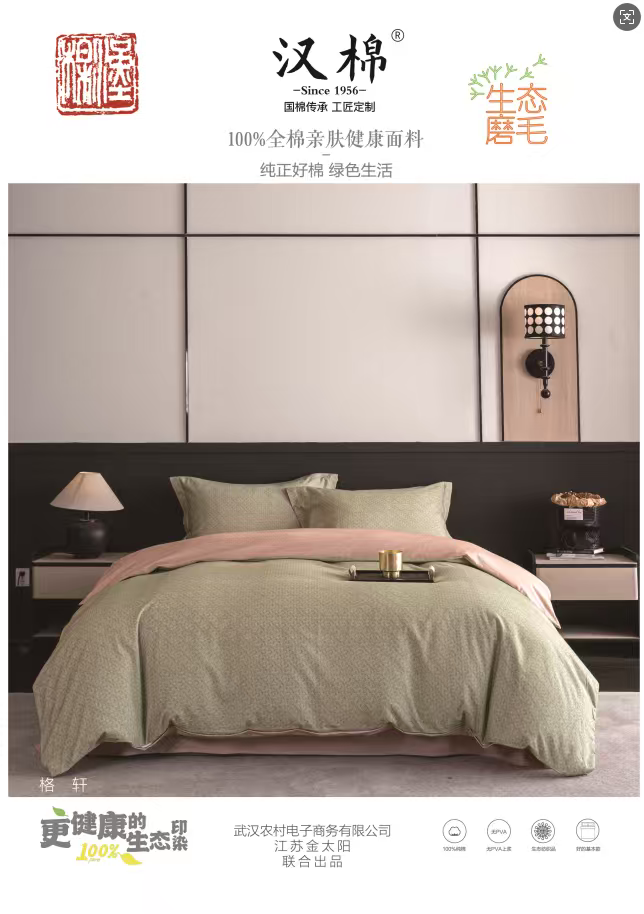 【武汉】汉棉生态磨毛全棉四件套被套:200*230cm,床单245*250cm,枕套2个:48*74cm