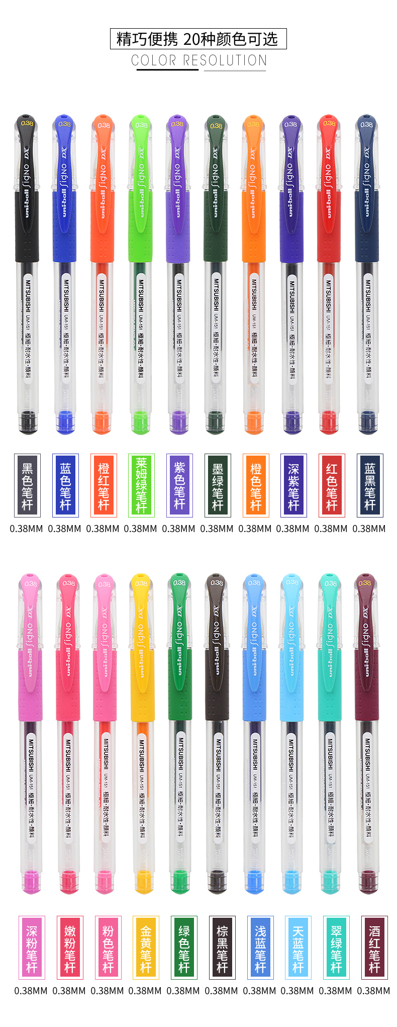三菱耐水性双珠啫喱笔/0.38/UM-151