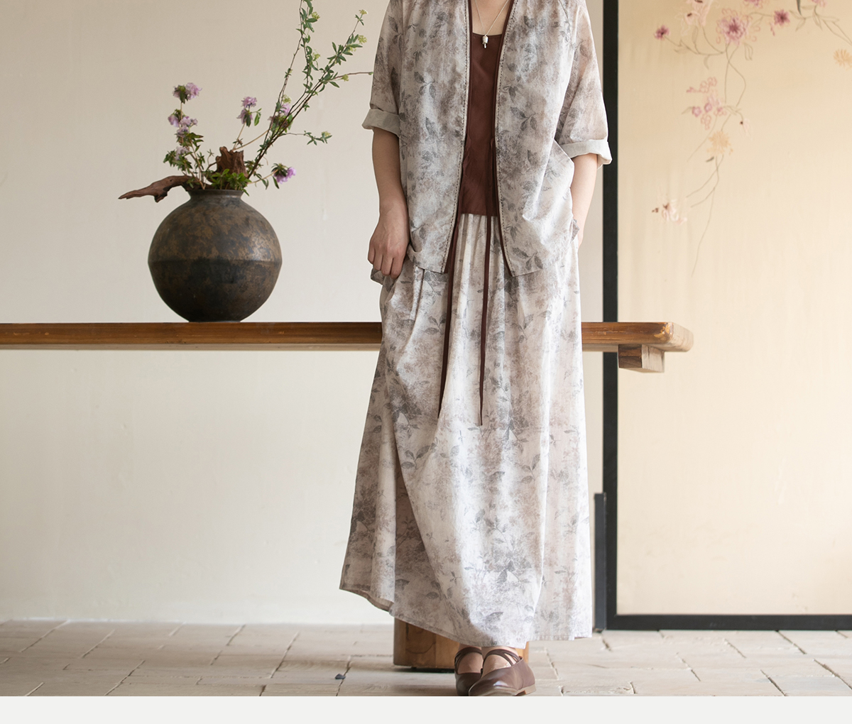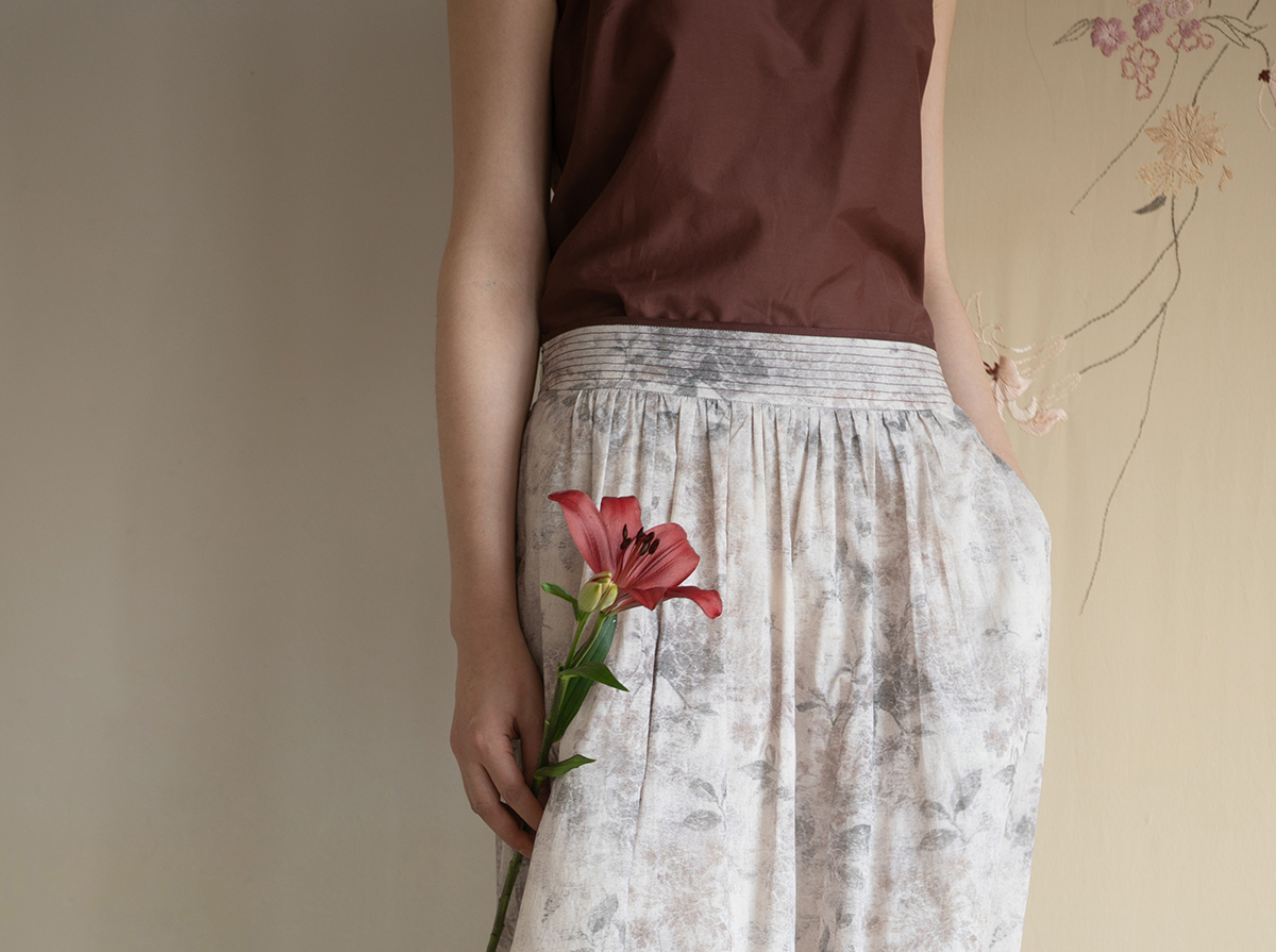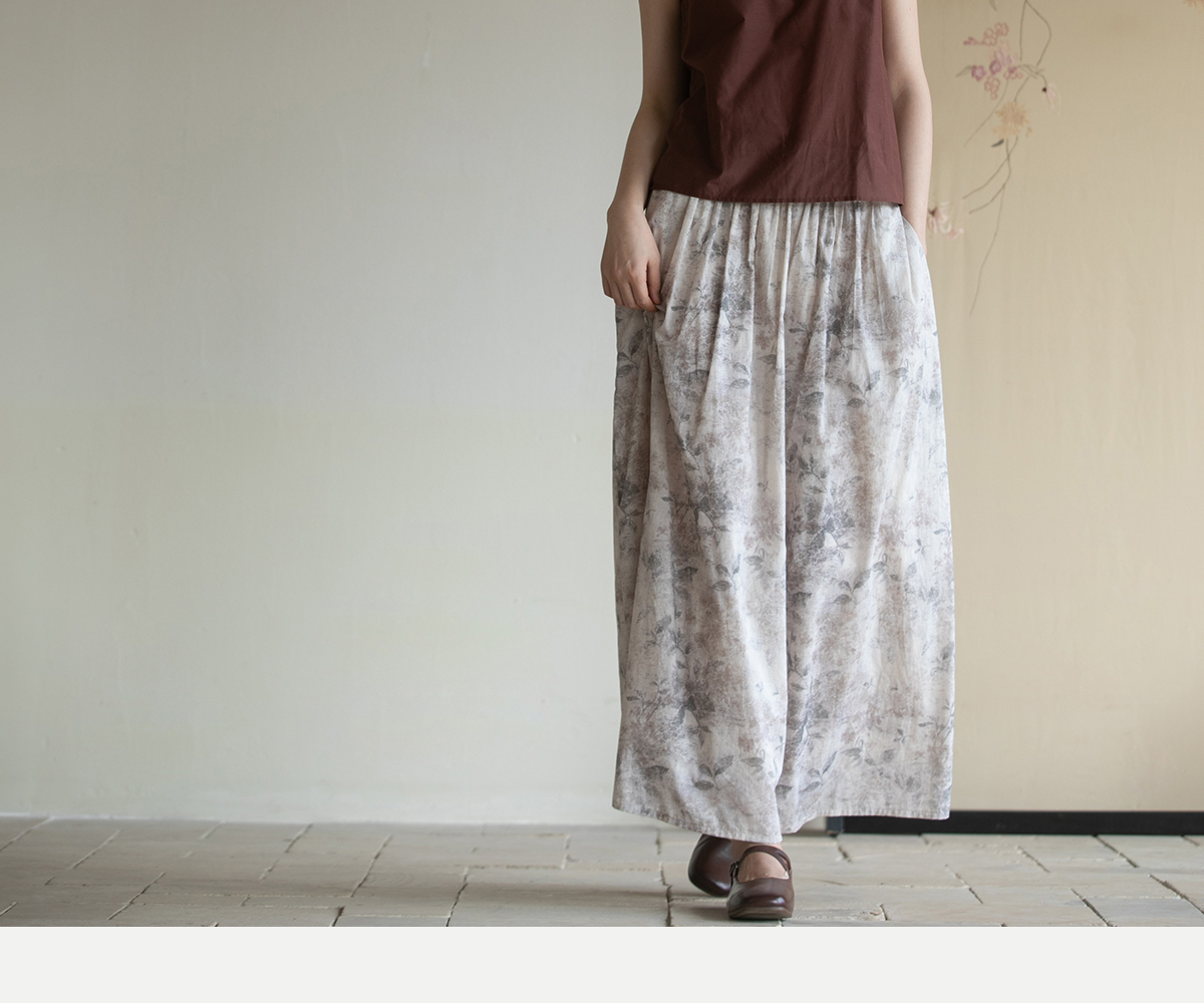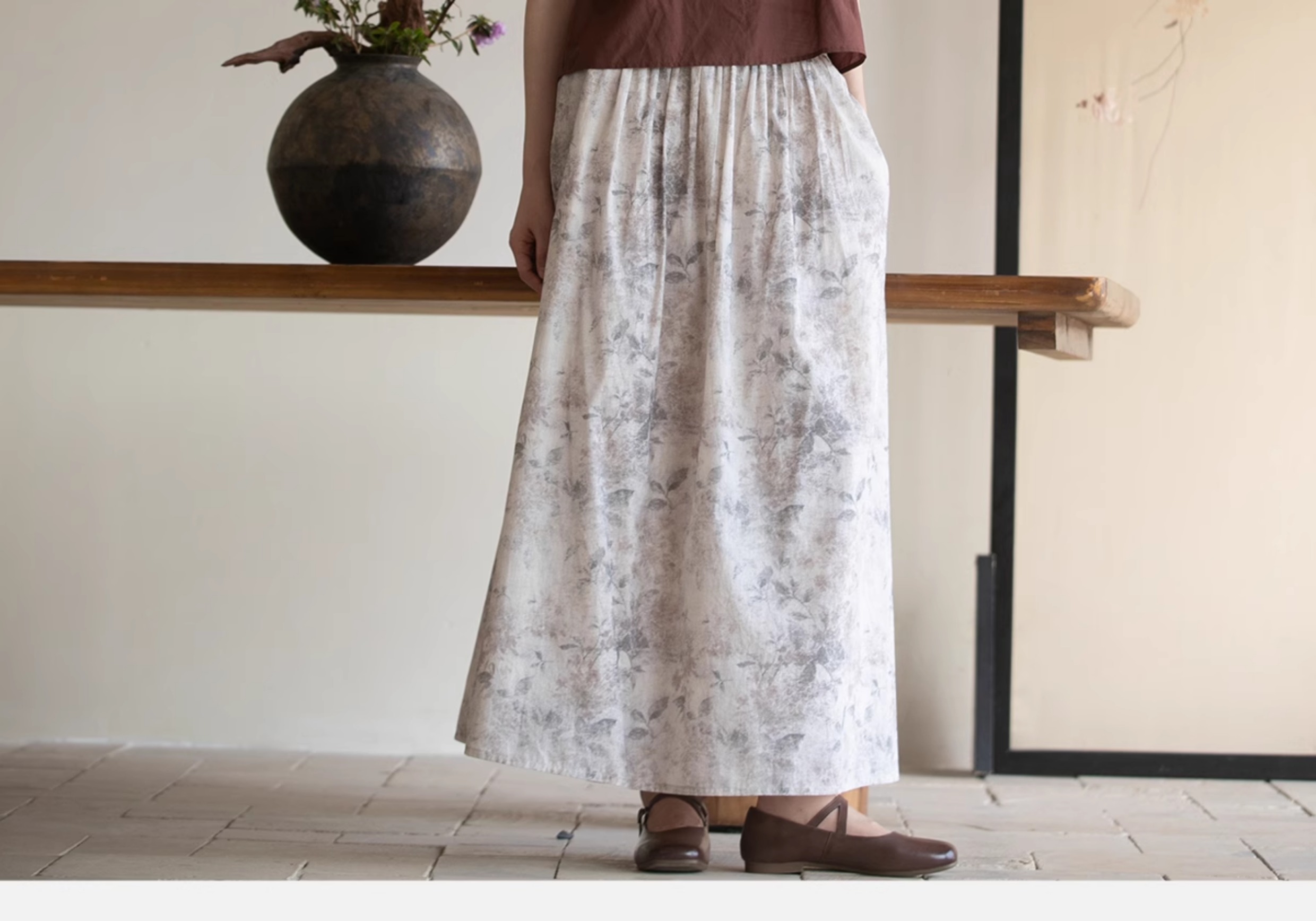 牧衣游原创 印花匹马棉半裙新款宽松文艺浪漫百搭A字半身裙 远照