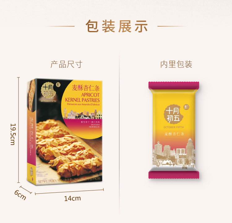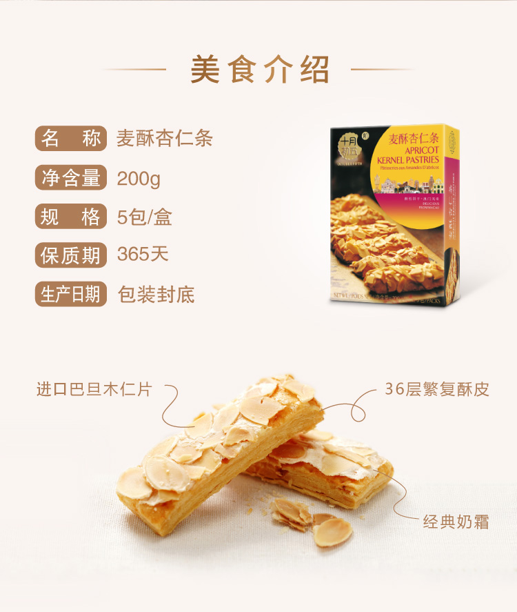 十月初五牌麦酥杏仁条200g/盒