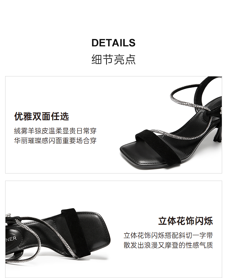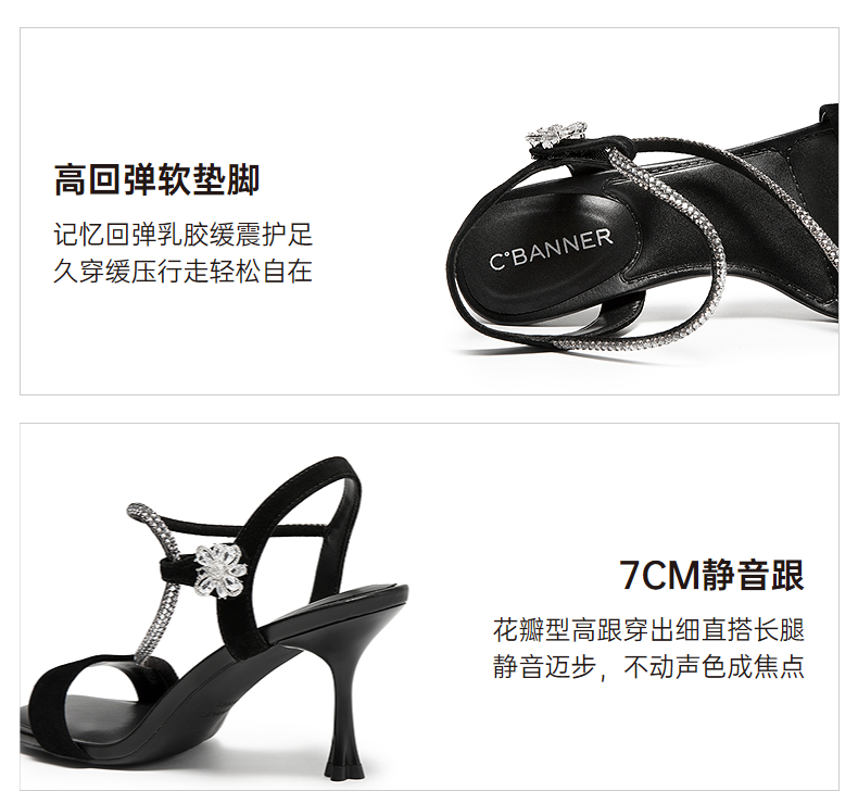 【上新】【静音系列】千百度细高跟时装凉鞋女2026夏季不累脚凉鞋A26381233