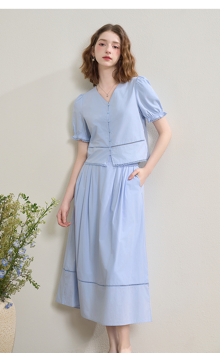 【限时秒杀】法式温柔气质通勤风套装女夏季衬衫搭半身裙两件套LXD50903