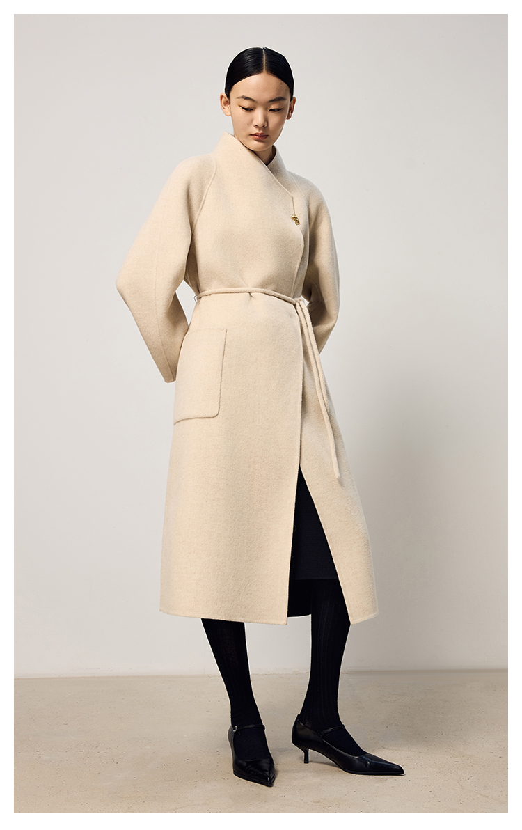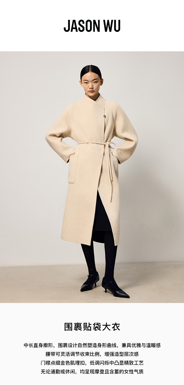 (绵羊毛)【JASON WU】2025秋冬新款纯色简约设计感双面呢大衣外套女