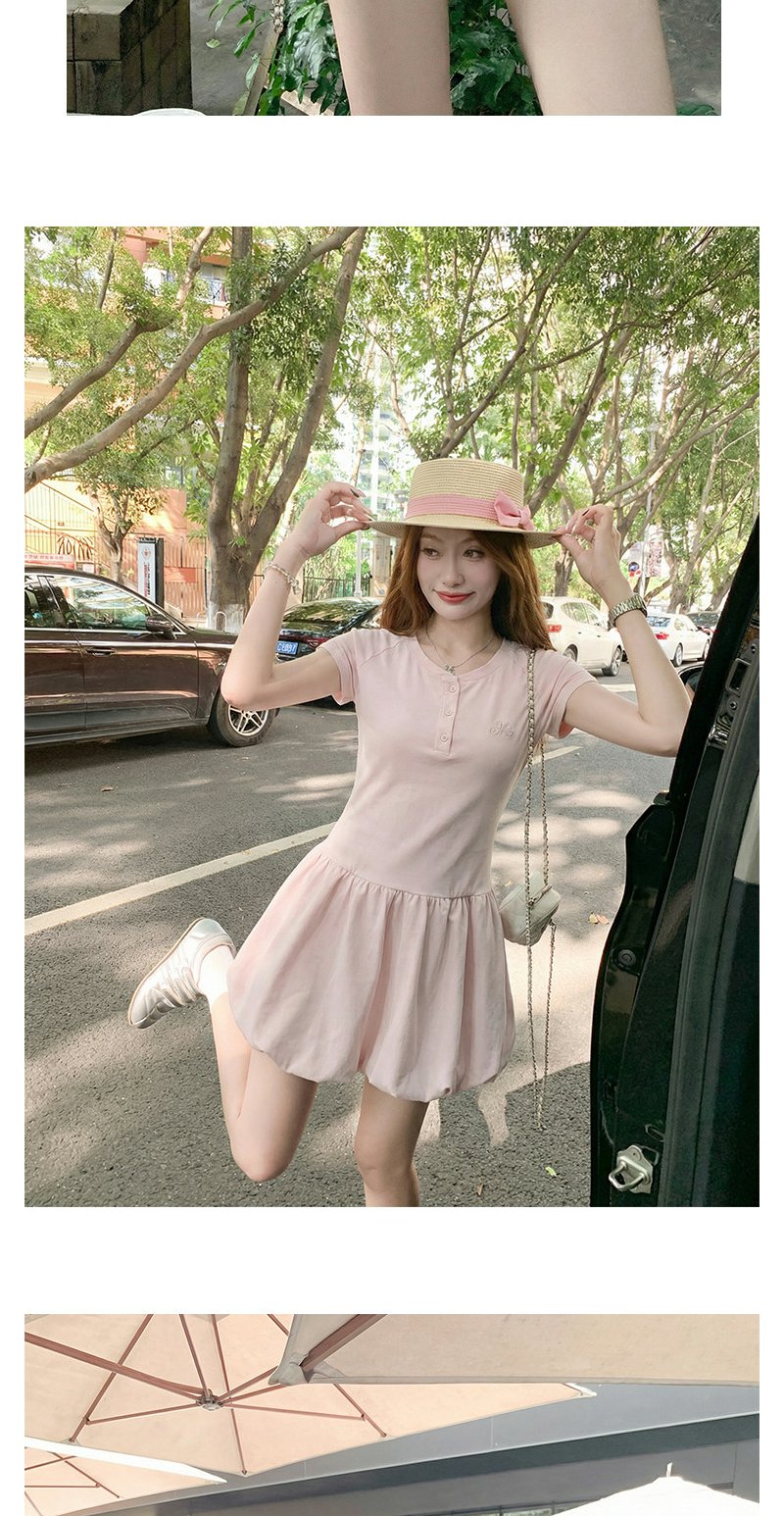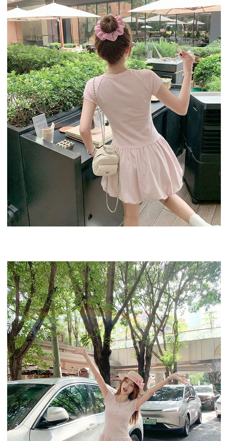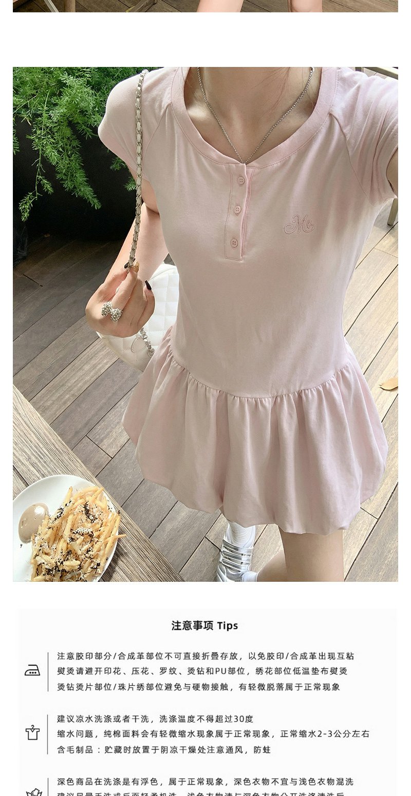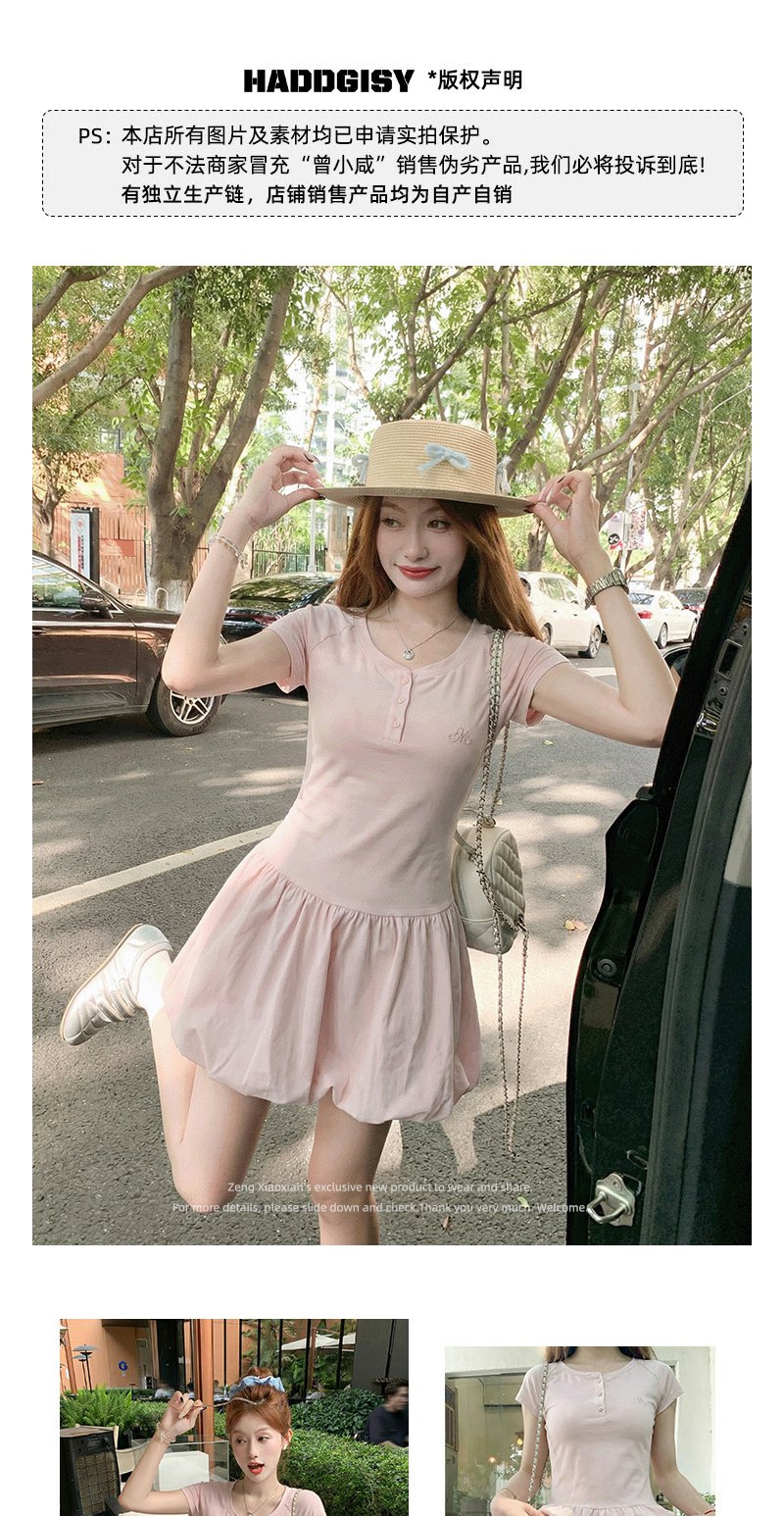 <曾小咸推荐>韩系刺绣u领短袖连衣裙花苞裙