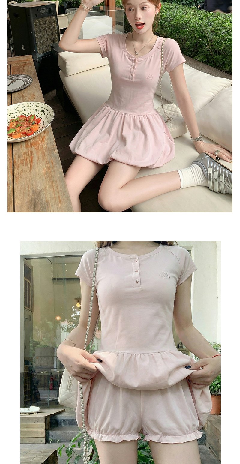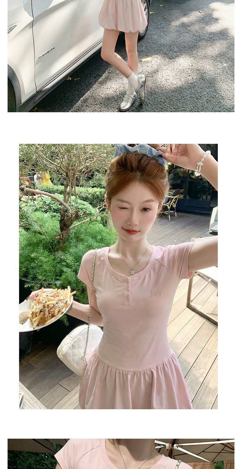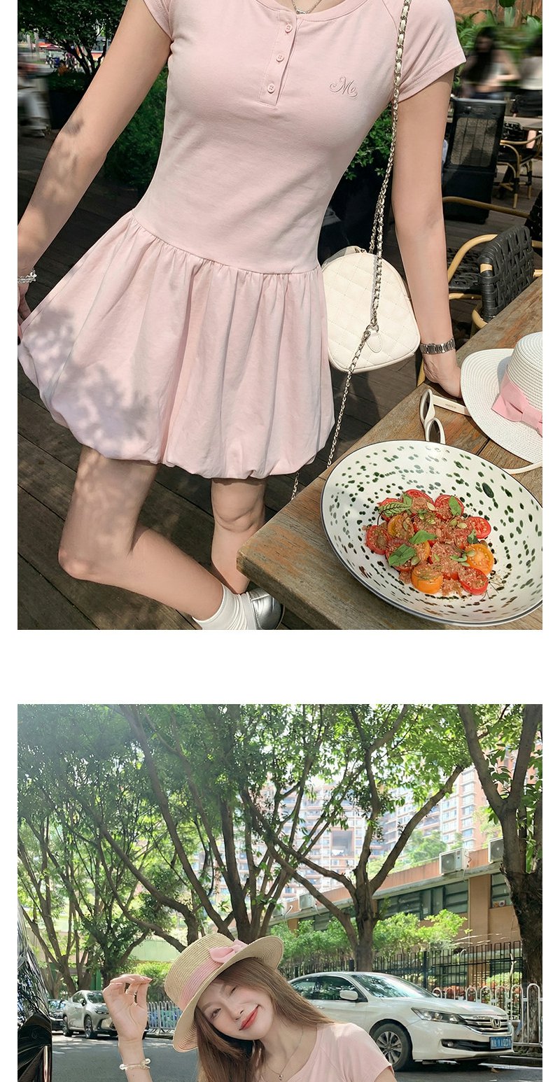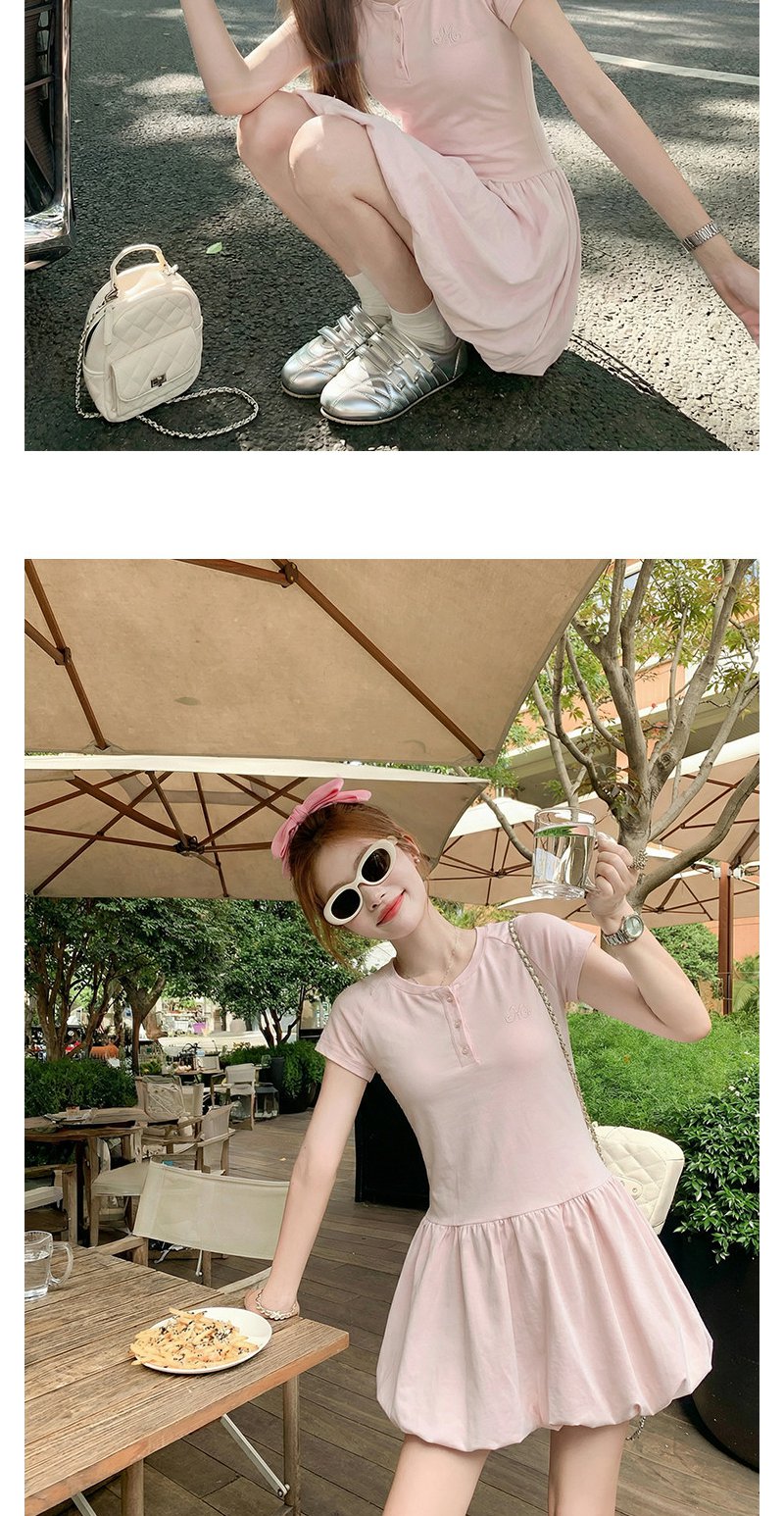 <曾小咸推荐>韩系刺绣u领短袖连衣裙花苞裙