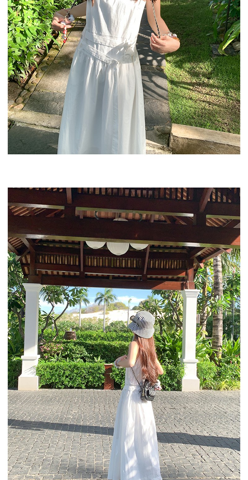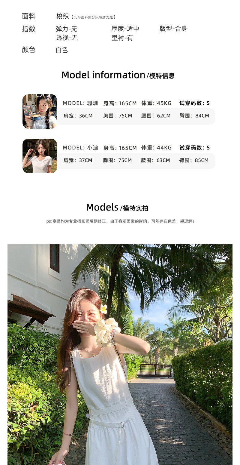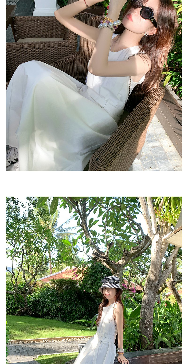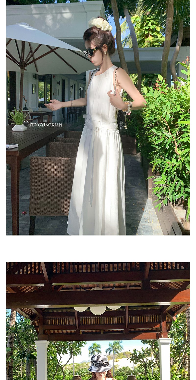 <曾小咸推荐>韩版白色过膝无袖腰带连衣裙