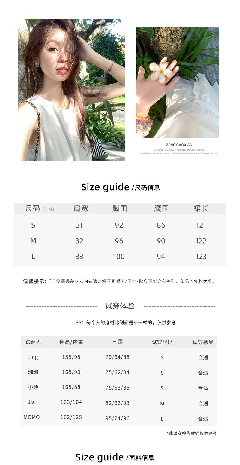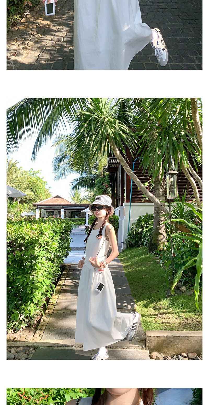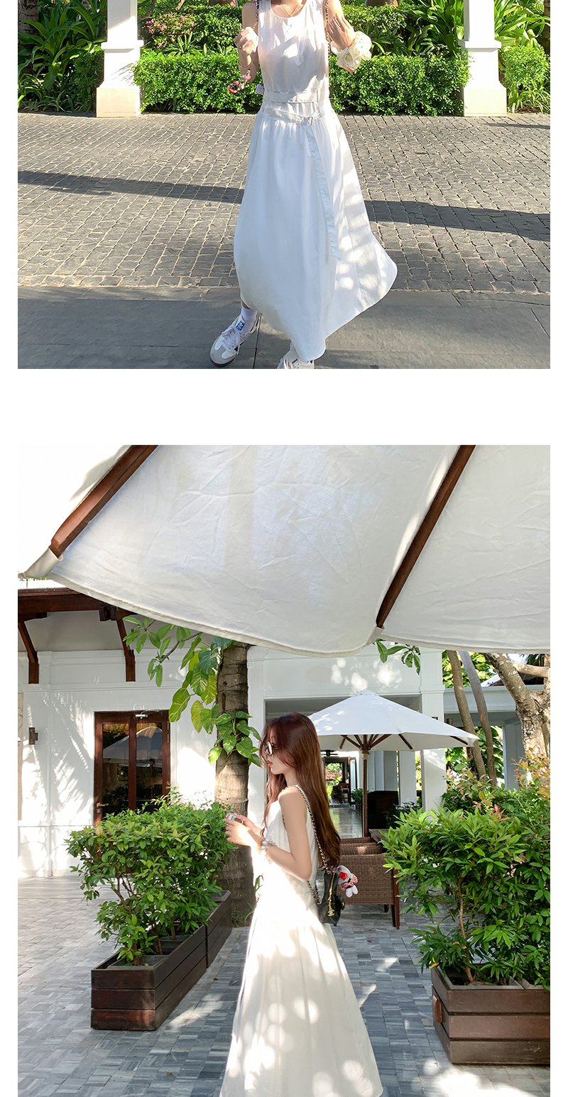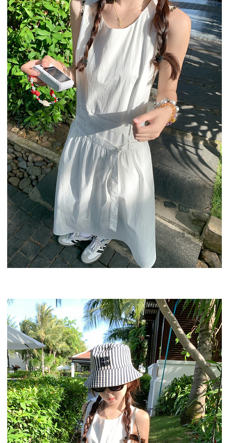 <曾小咸推荐>韩版白色过膝无袖腰带连衣裙