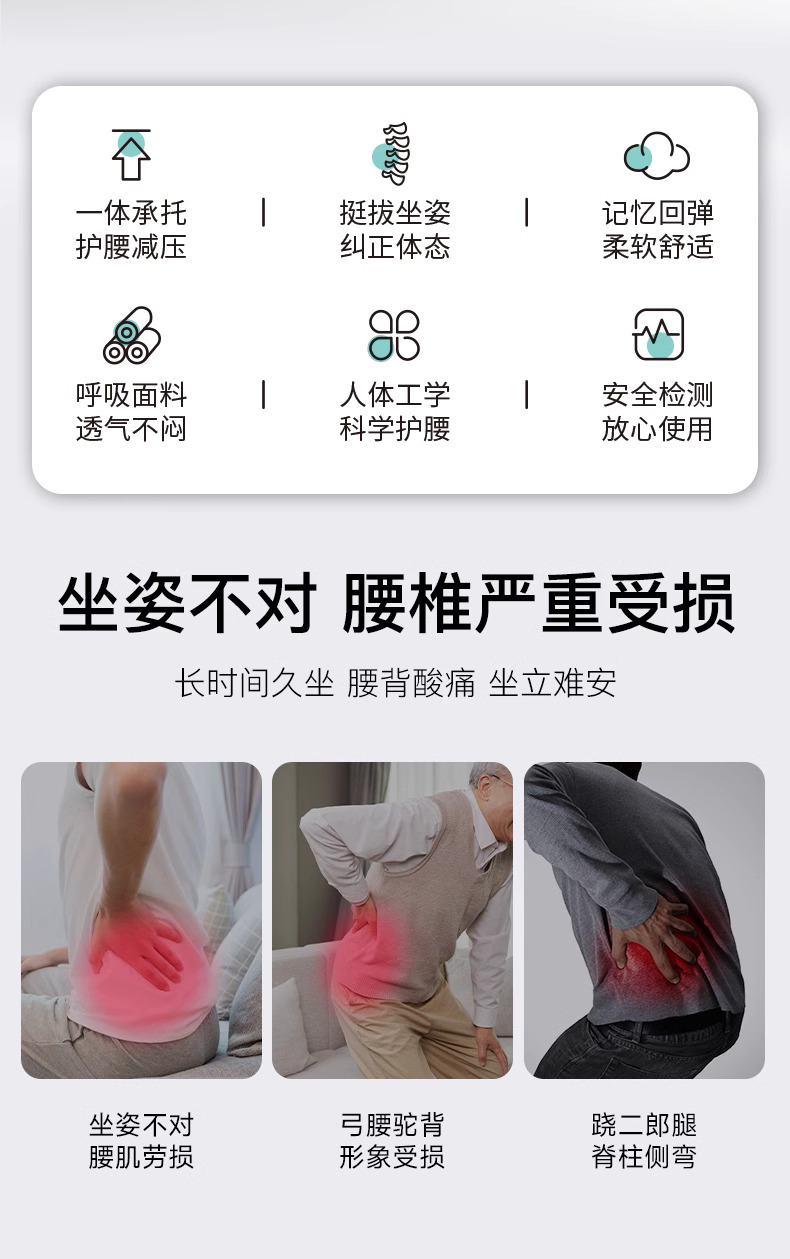 护腰坐垫久坐神器靠背垫一体腰靠腰托腰部支撑座椅靠垫办公室腰垫