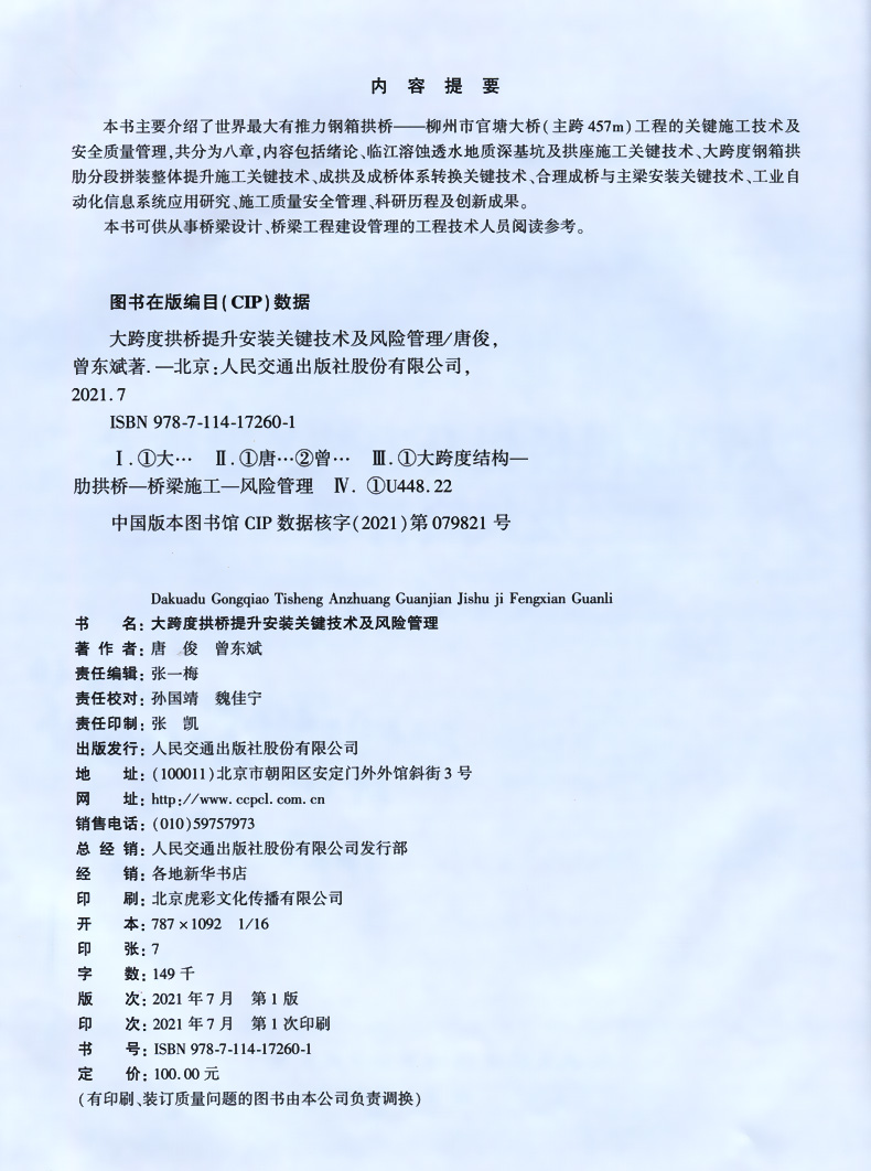 书名:大跨度拱桥提升安装关键技术及风险管理