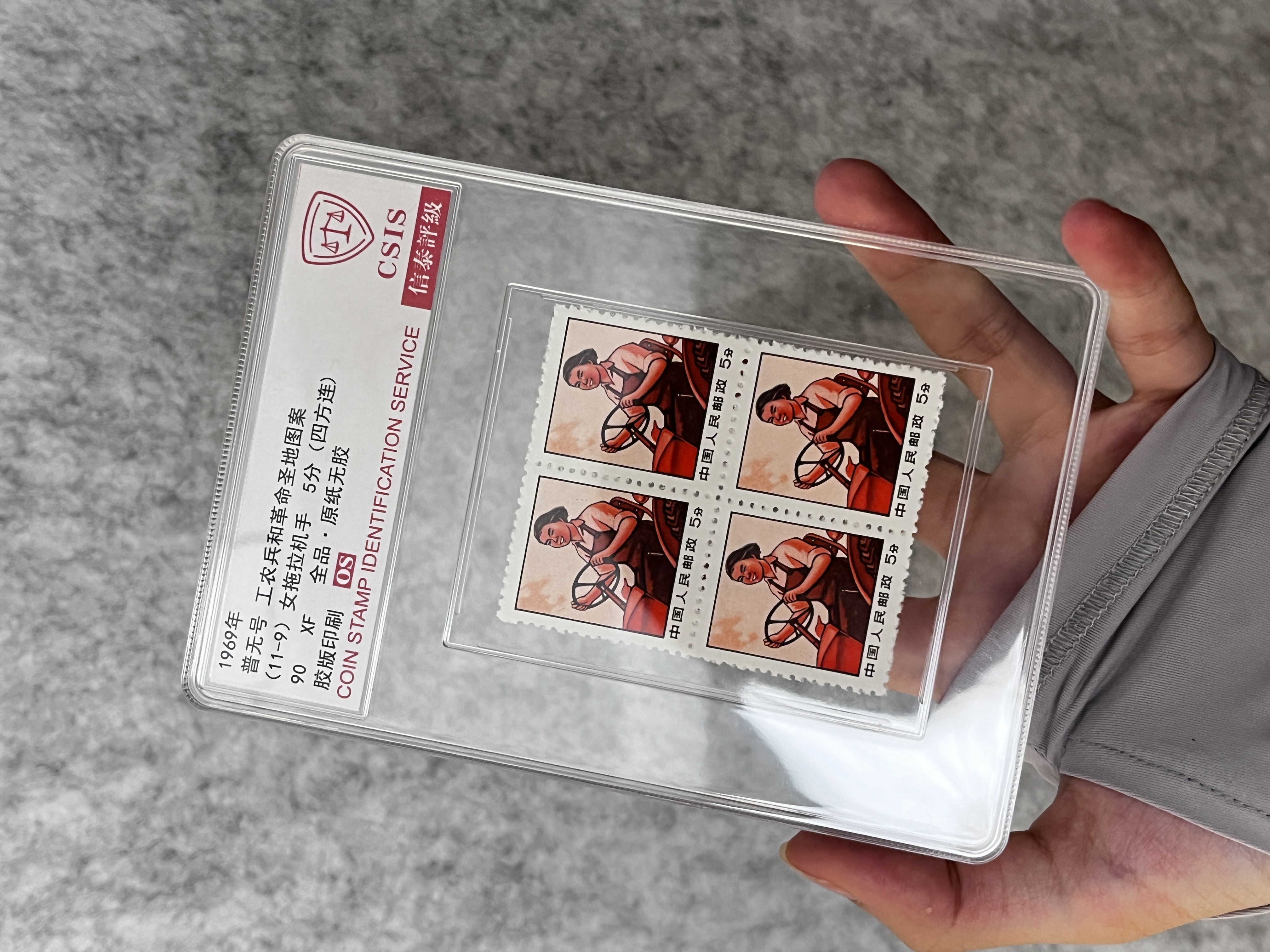 1969年 普无号 工农兵和革命圣地图案(11-9)女拖拉机手5分(四方连)封装评级90分