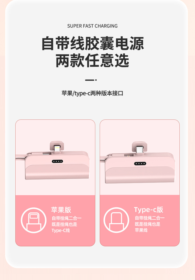 【插·来电!口袋充电宝】小巧迷你大容量自带线胶囊充电宝10000毫安快充便携共享移动电源,真正出门无需带线,真是妥妥的。ry