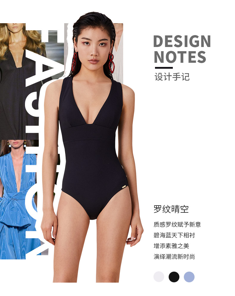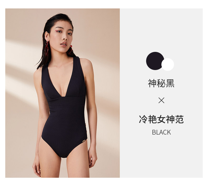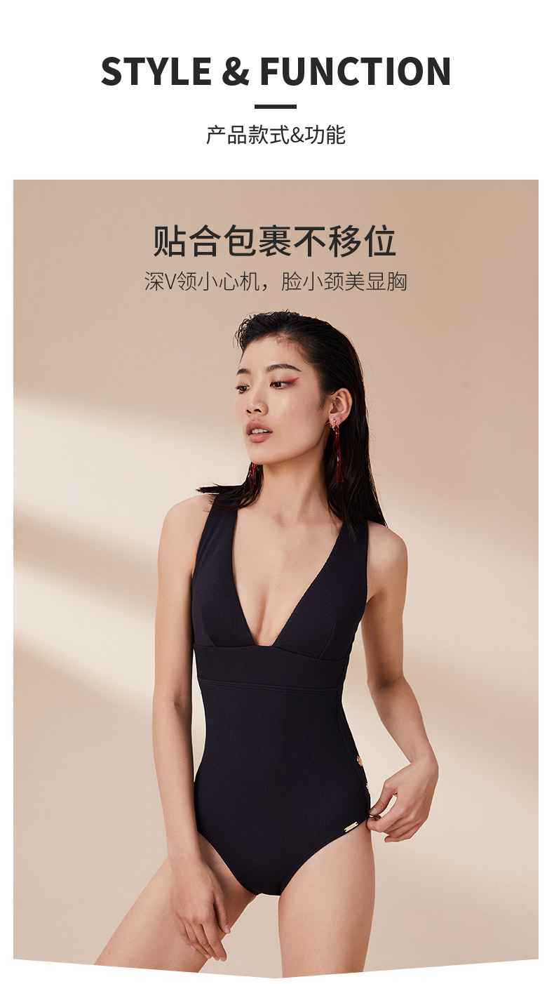 sisia泳衣女夏2021新款黑色时尚性感v领显瘦遮肚连体泳衣仙气ins