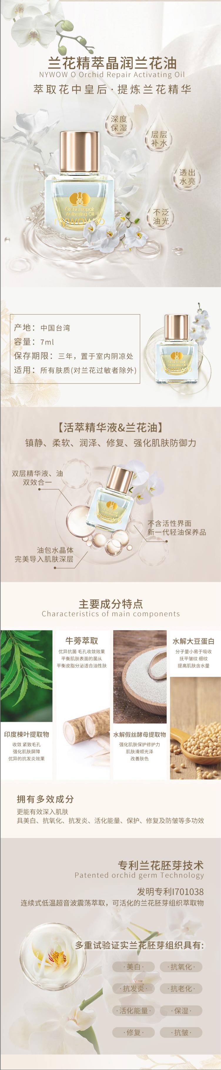 【悦己福袋】nywow o 兰花精粹修护兰花油 7ML *3瓶装(赠AUDACE按摩油140ML*1 AUDACE眼霜1ML*3 AUDACE美体刷*1)[D类]