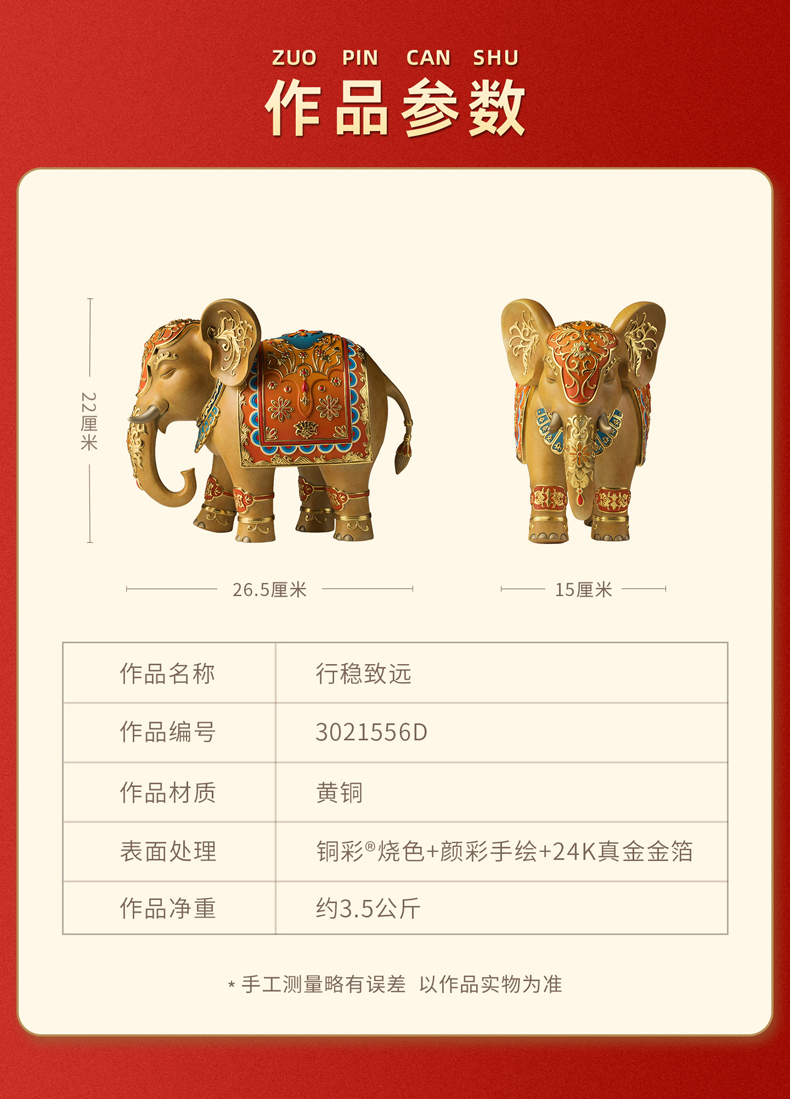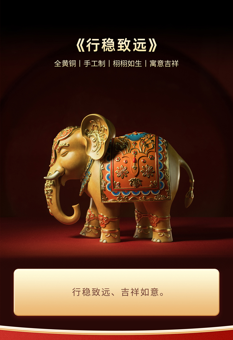 铜师傅《行稳致远》大象铜摆件 客厅家居装饰品乔迁新居礼物