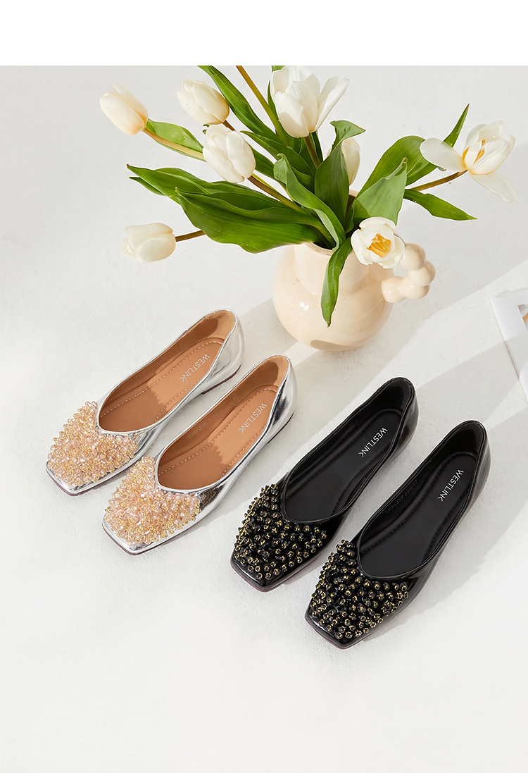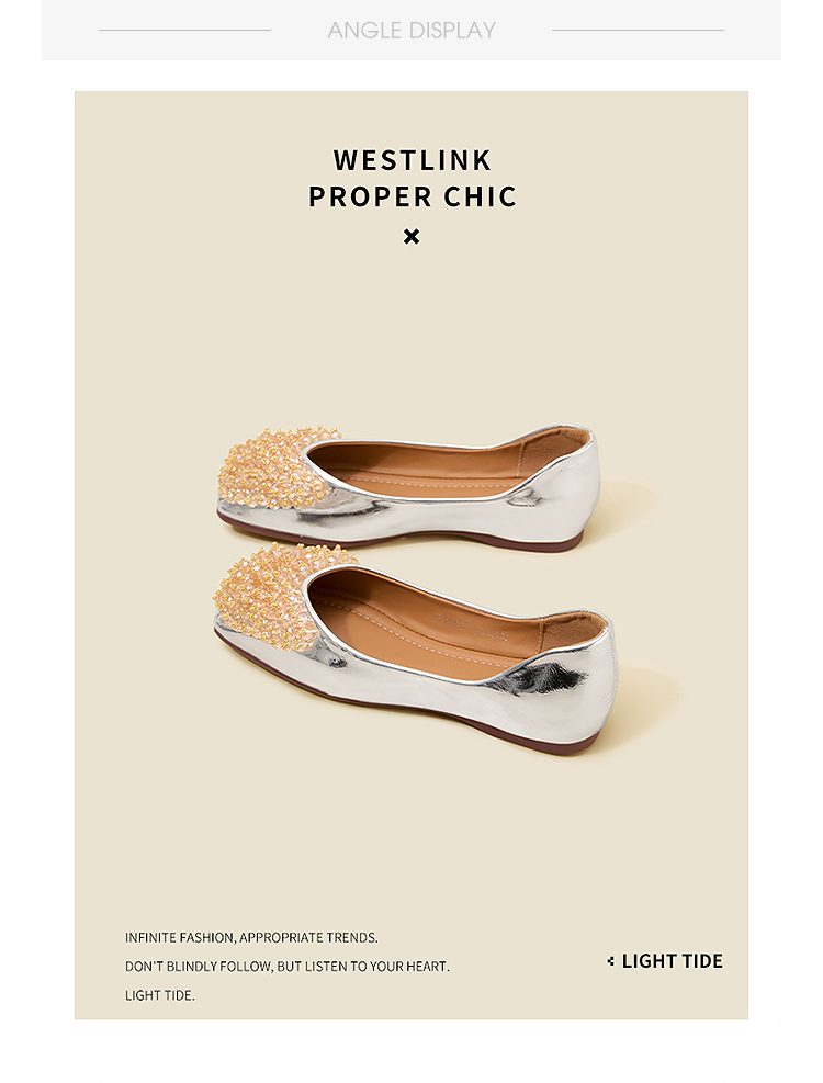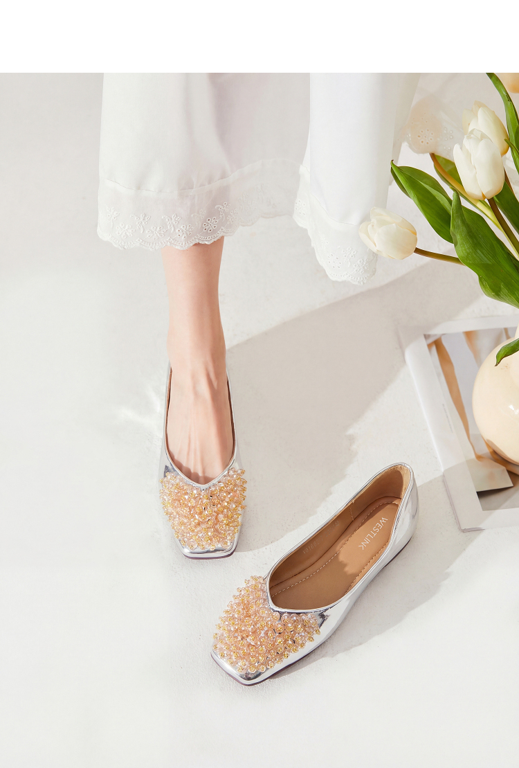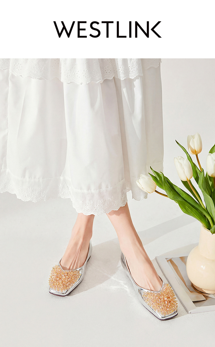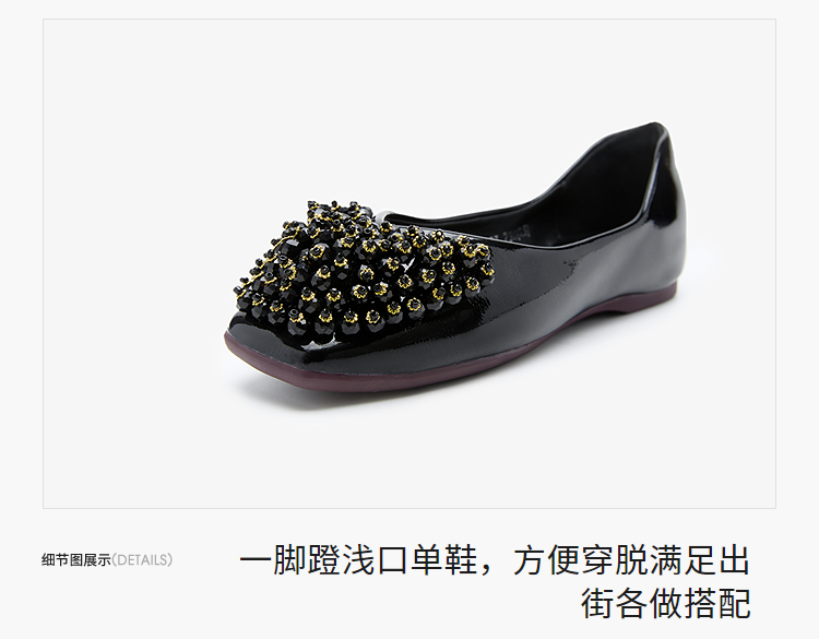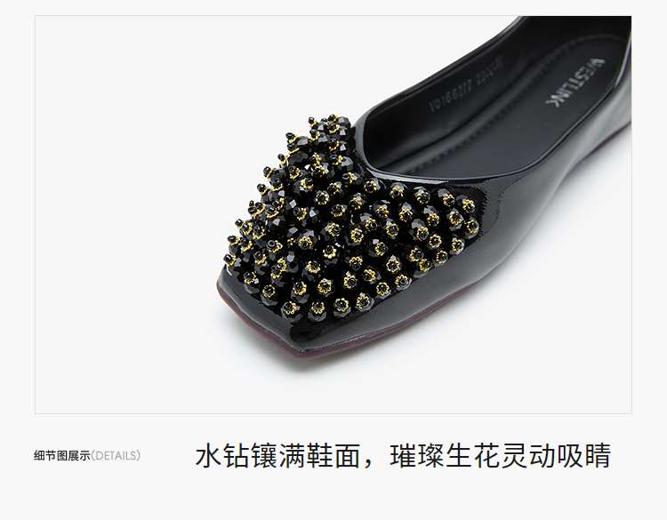 西遇平底单鞋女2026春季新款水钻仙女风气质一脚蹬软底方头小皮鞋V0166277
