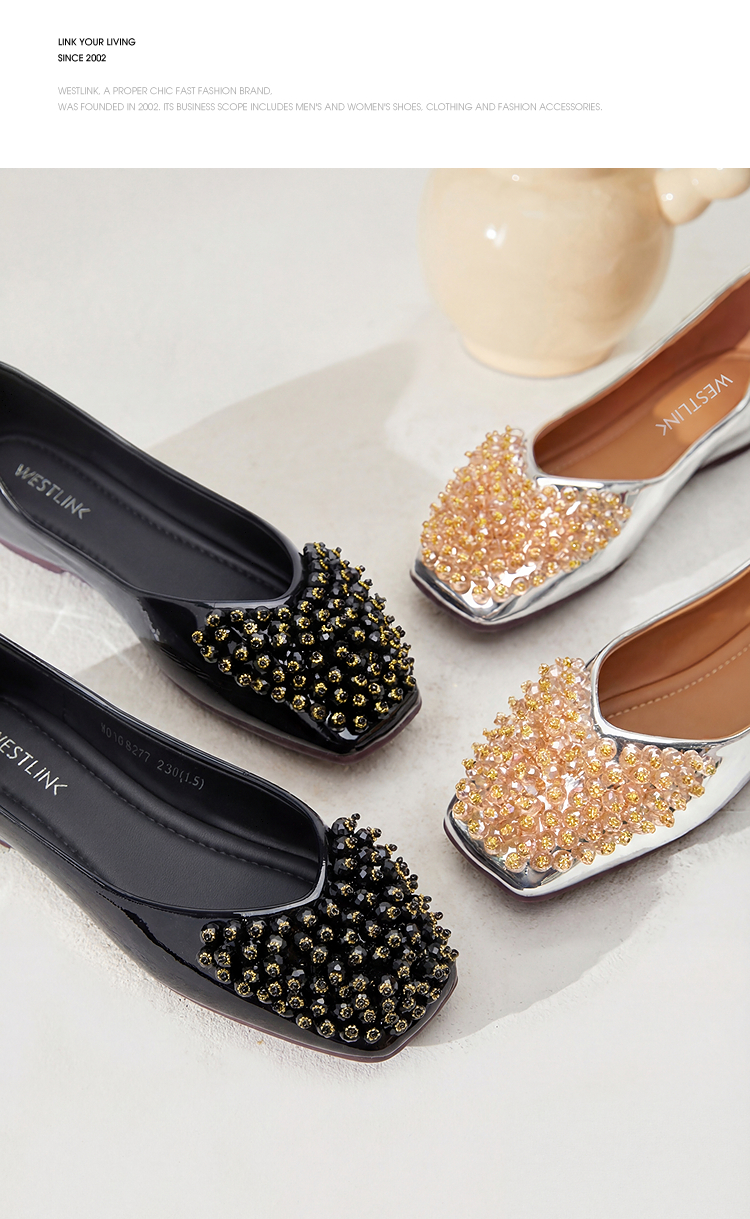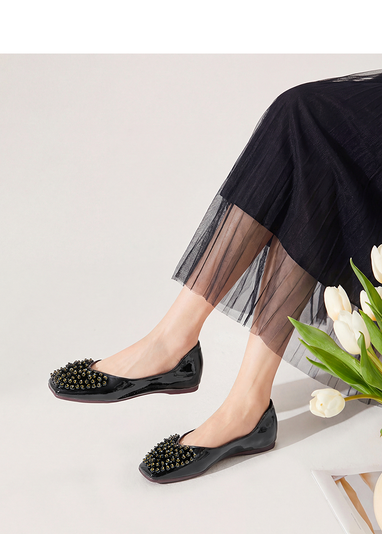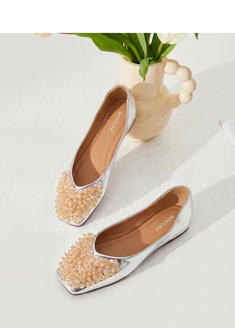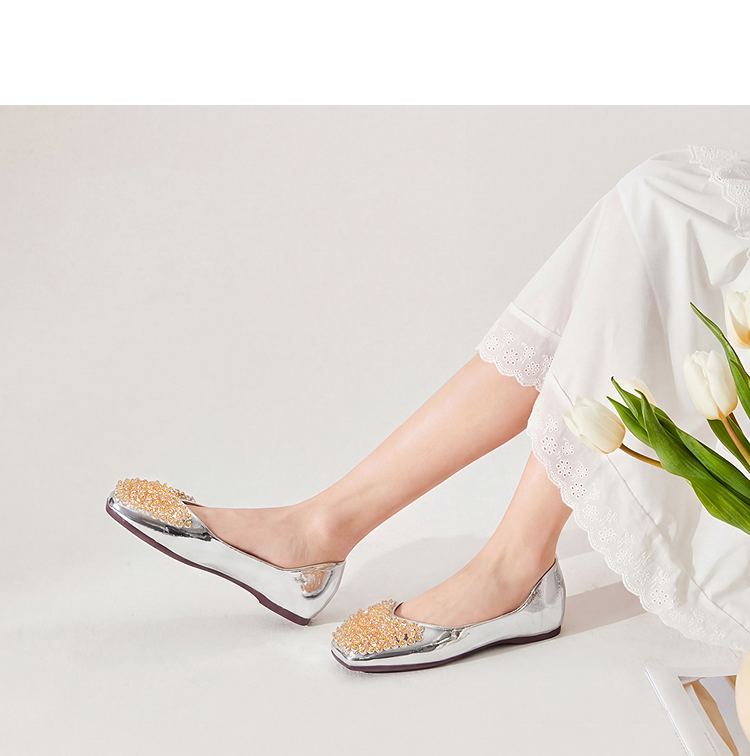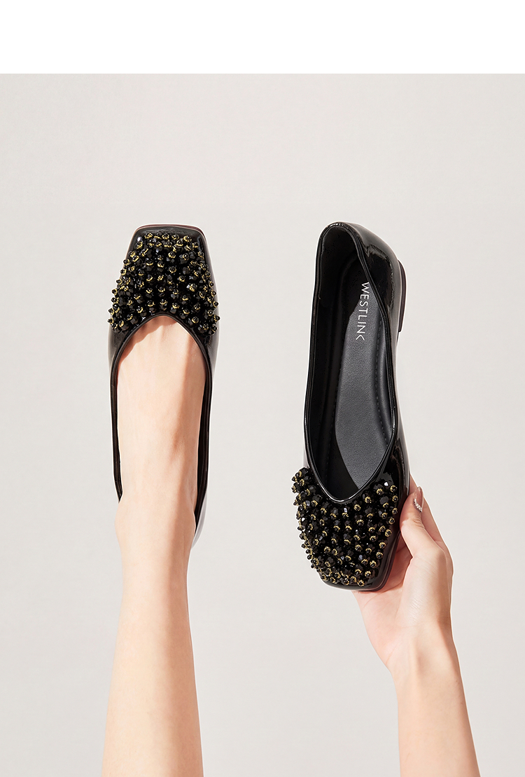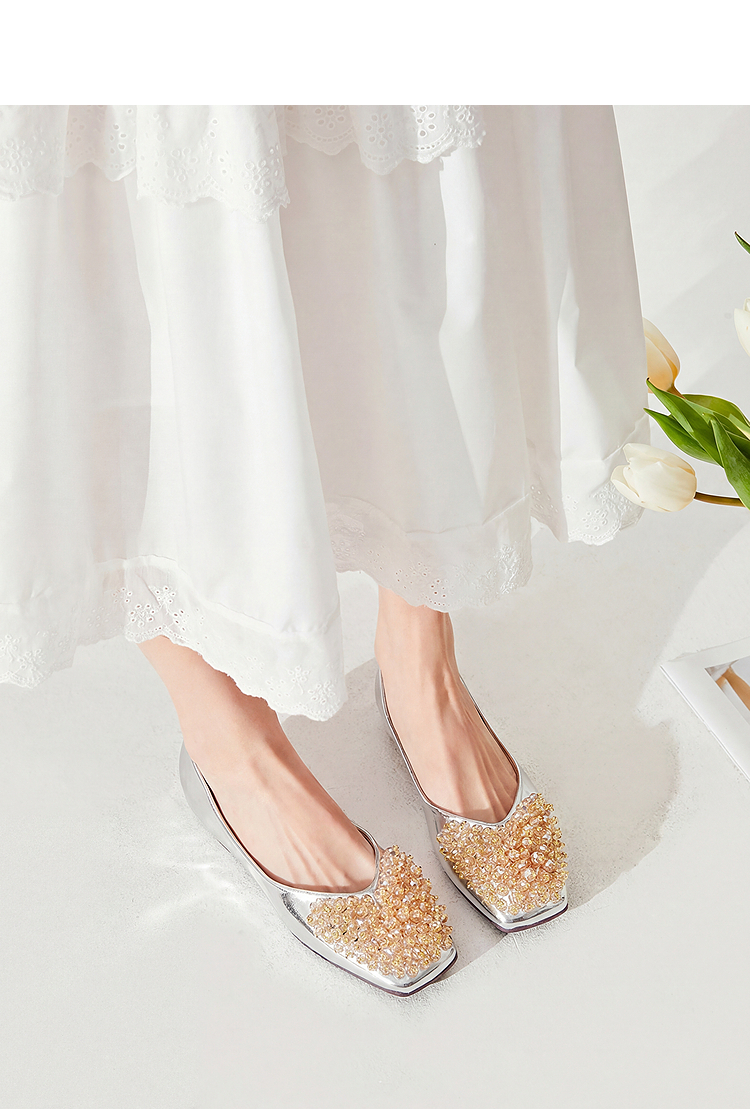 西遇平底单鞋女2026春季新款水钻仙女风气质一脚蹬软底方头小皮鞋V0166277