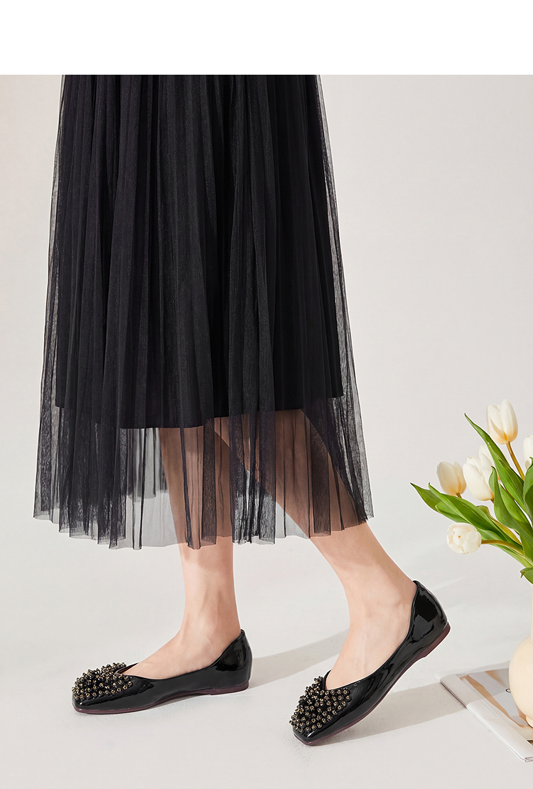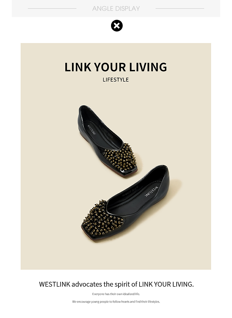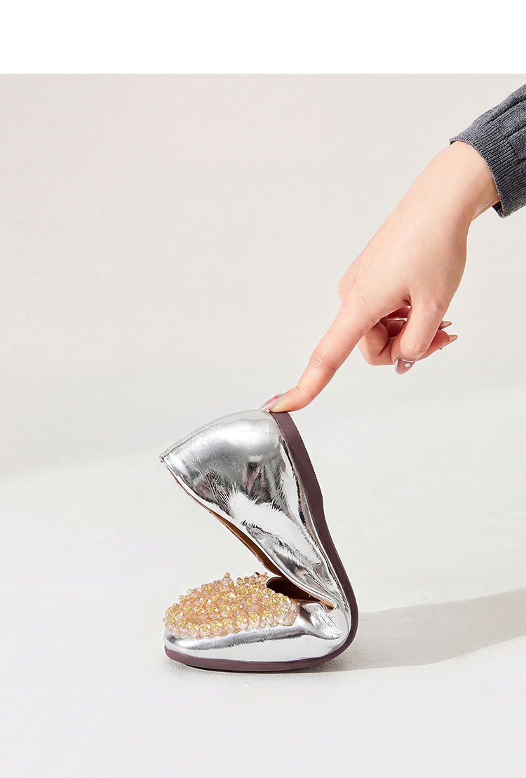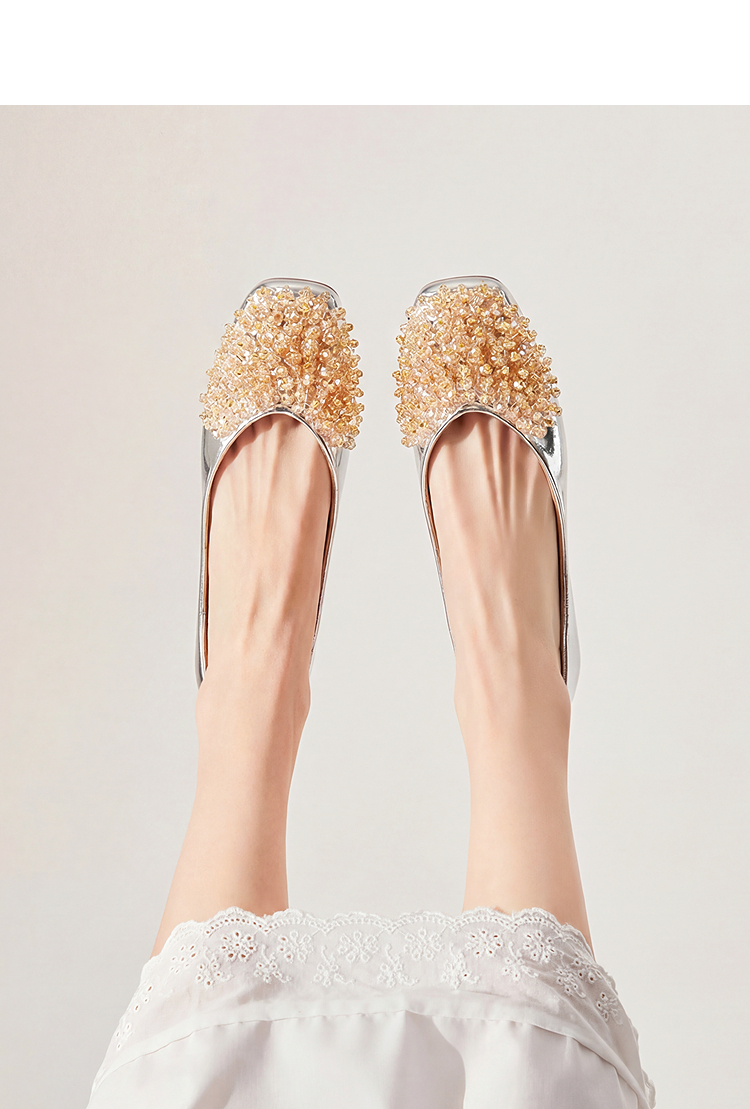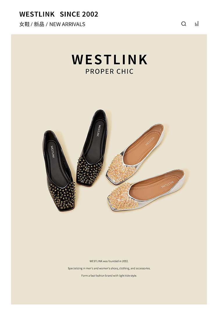 西遇平底单鞋女2026春季新款水钻仙女风气质一脚蹬软底方头小皮鞋V0166277