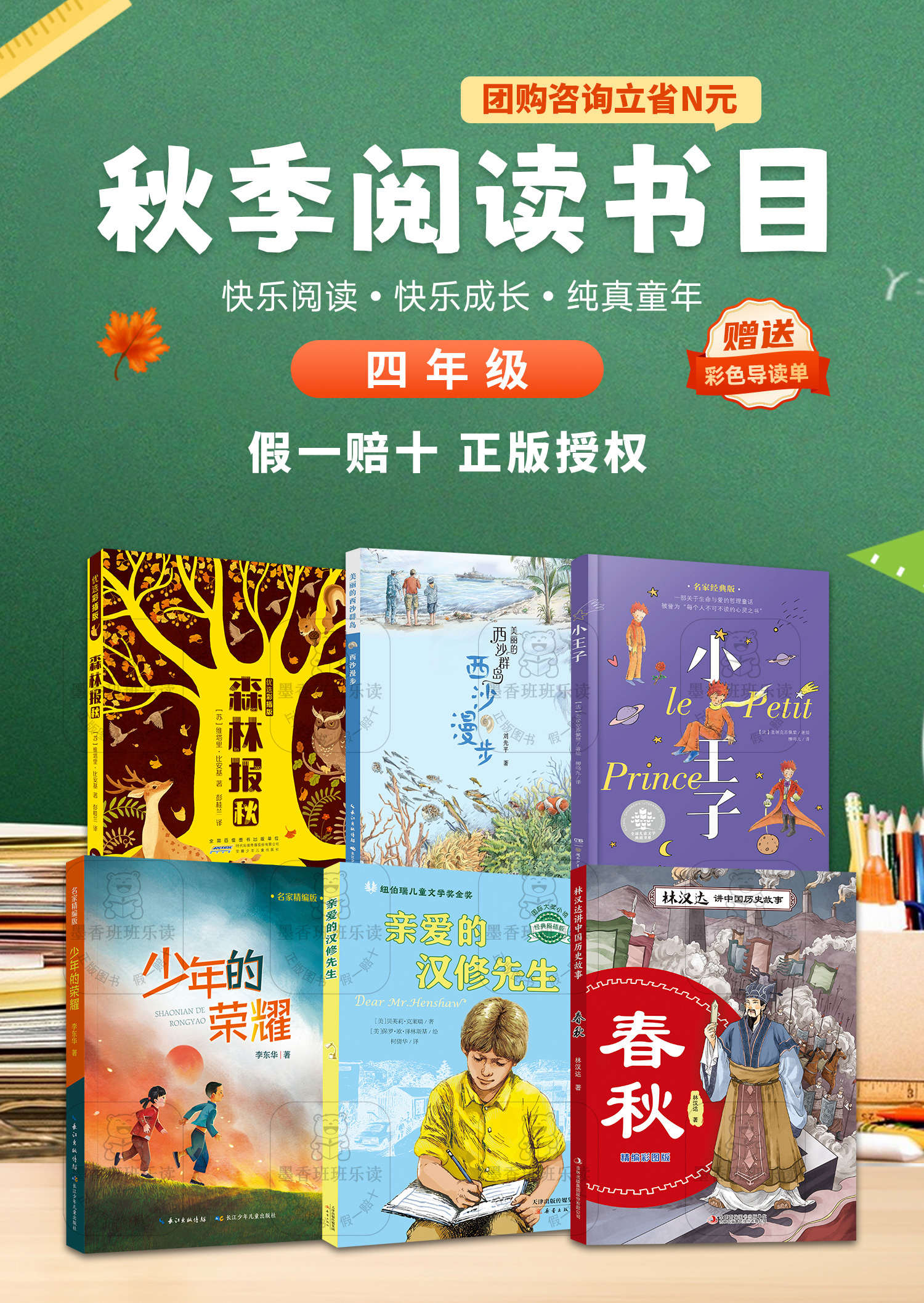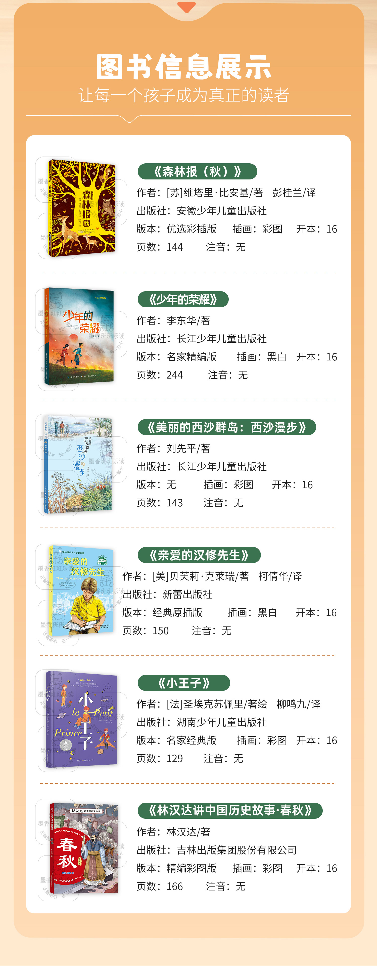 班班25秋四年级【单本】《森林报(秋)》《少年的荣耀》《美丽的西沙群岛:西沙漫步》《亲爱的汉修先生》《小王子》《林汉达讲中国历史故事·春秋》+导读单