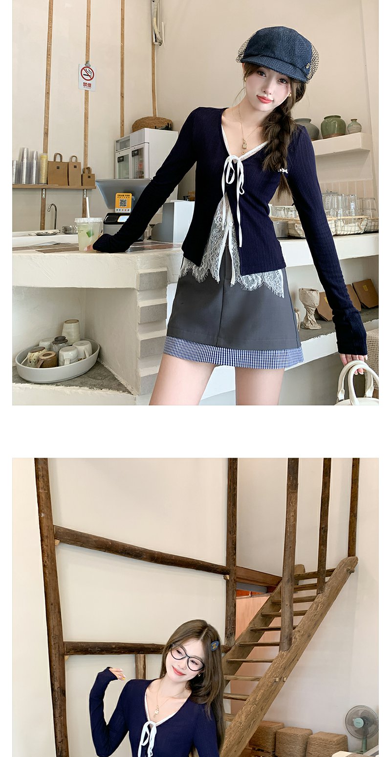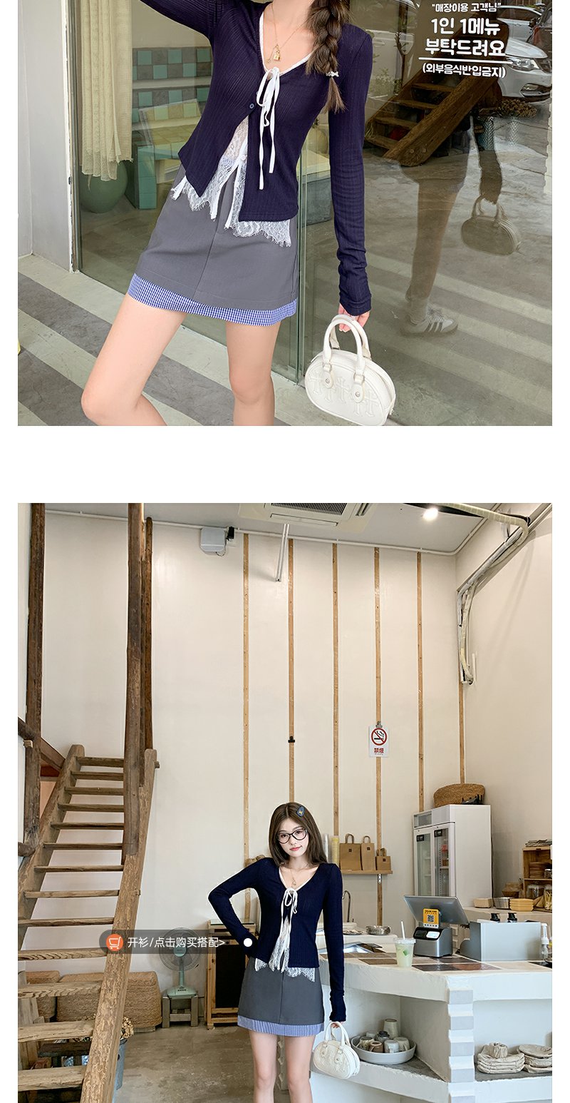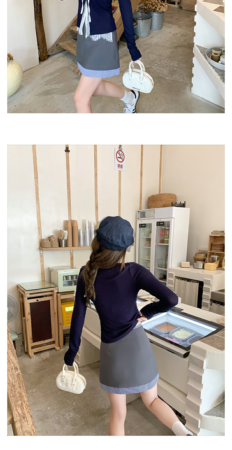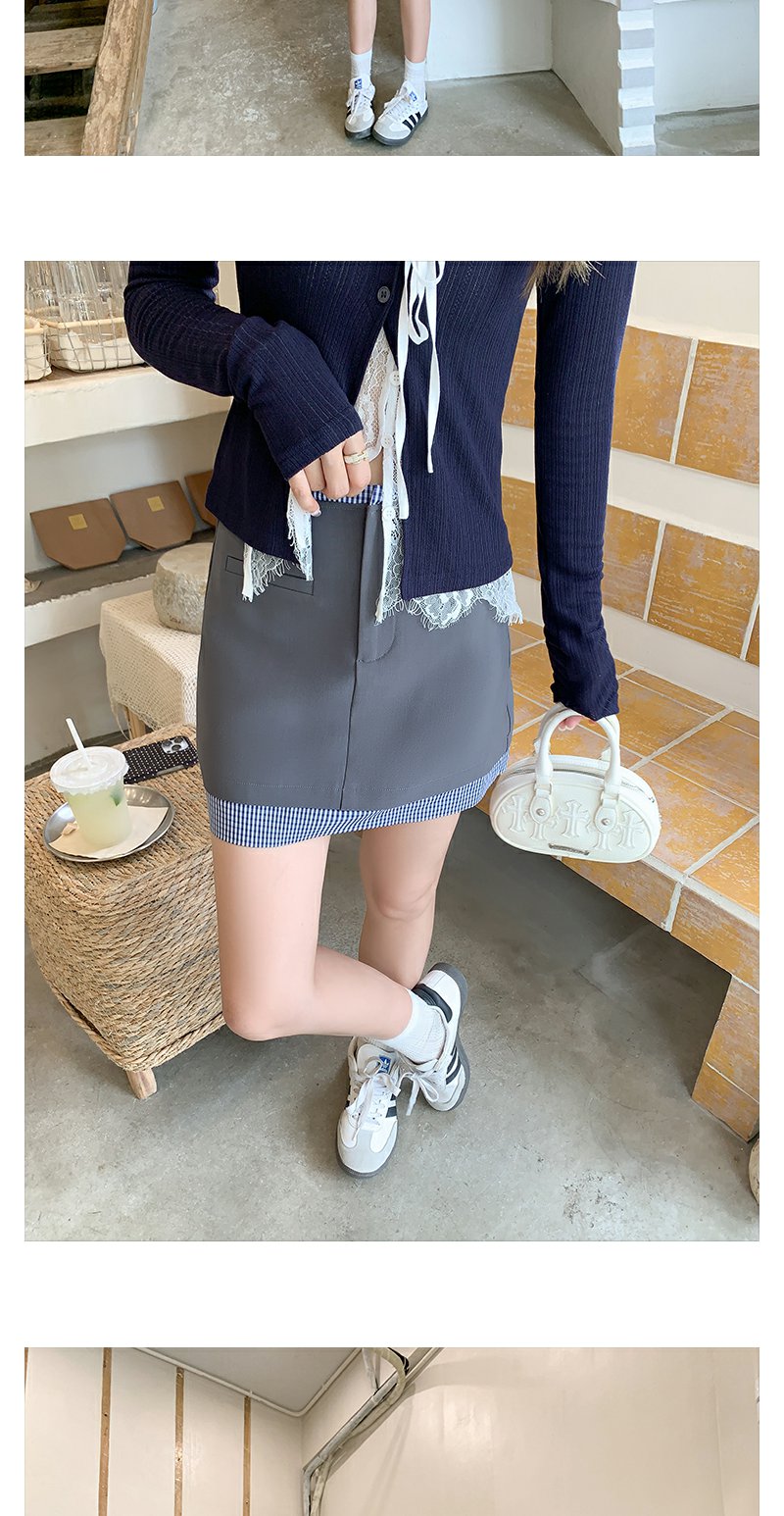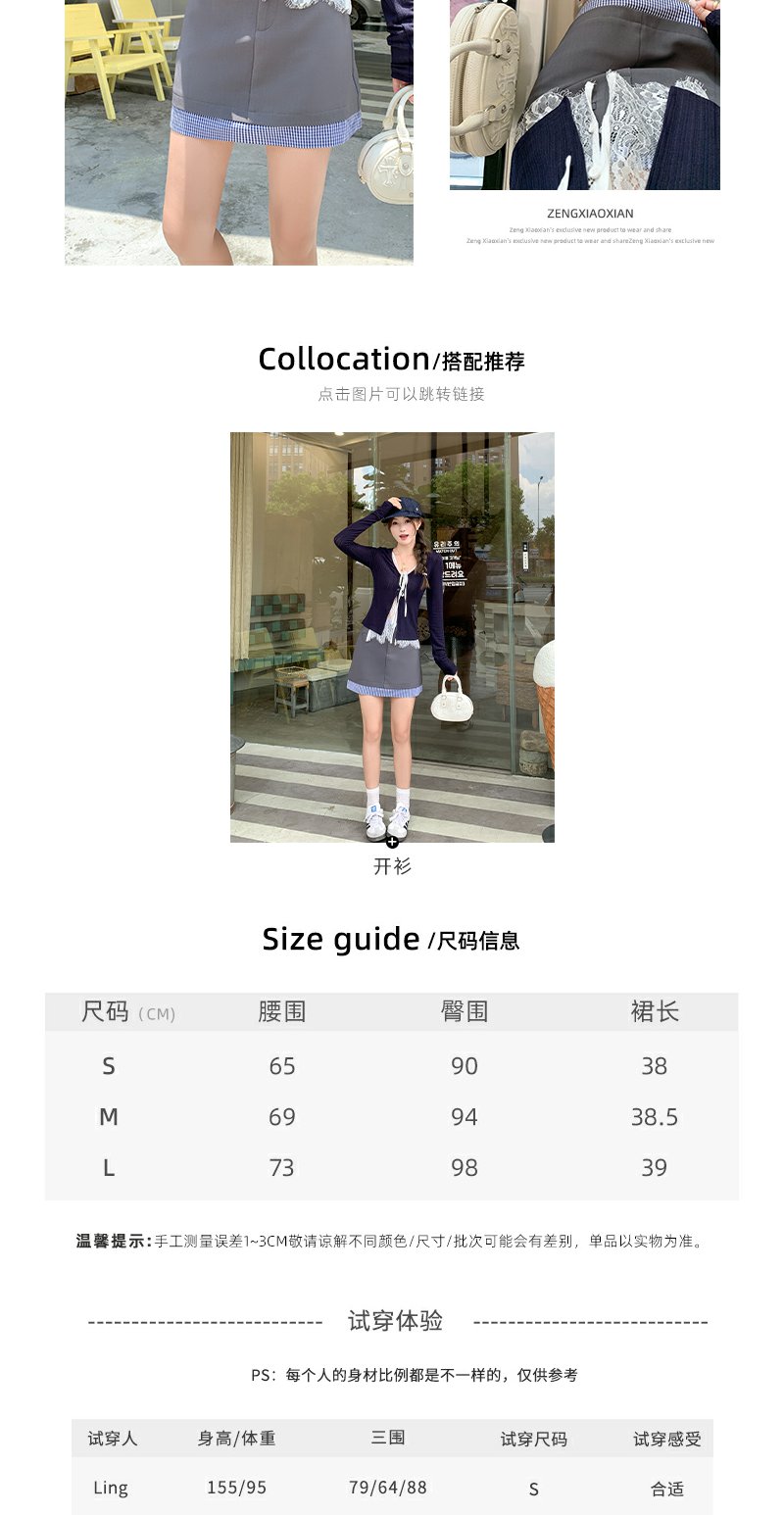 【129元任选2件】现货!学院风灰色拼接格纹假两件半身裙