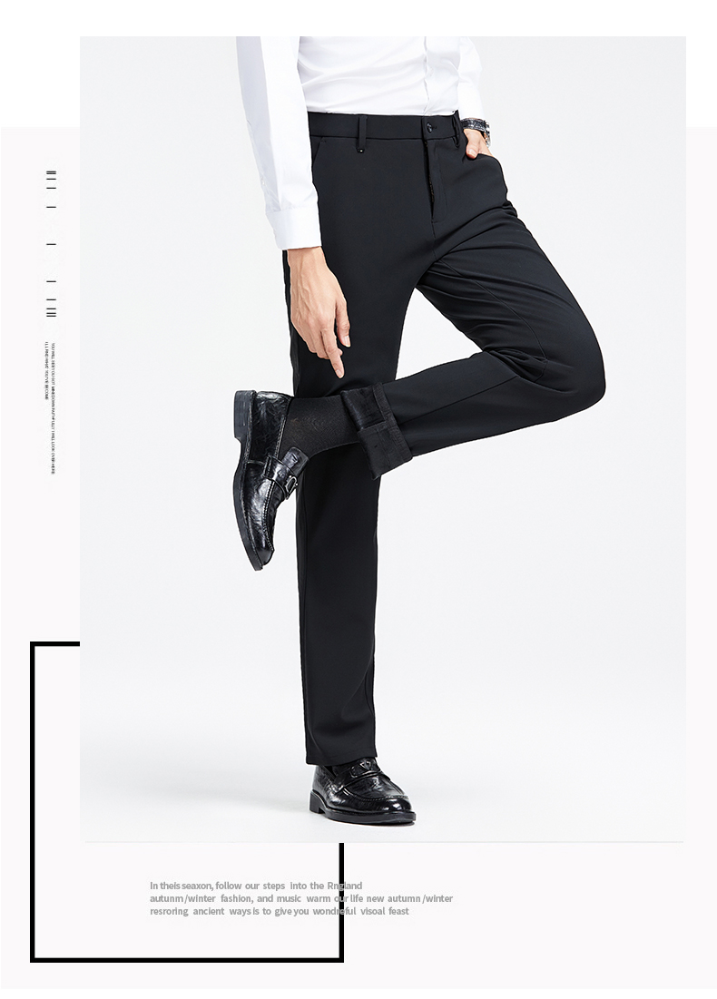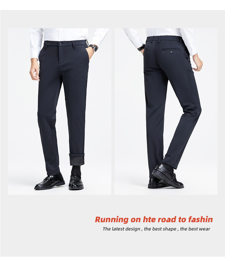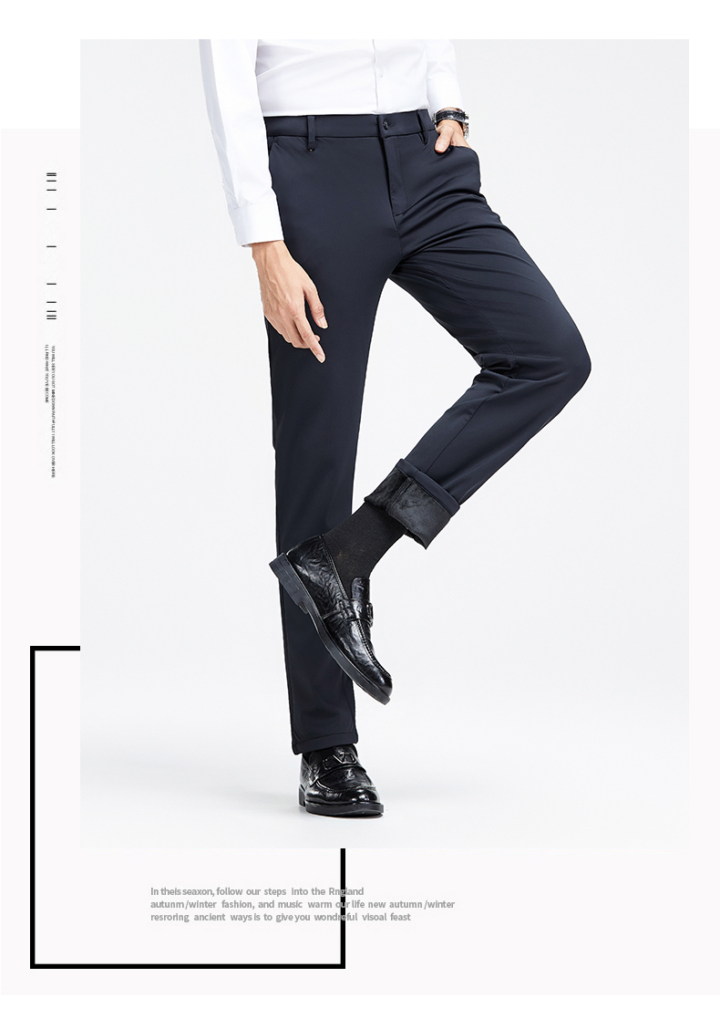 【加绒加厚】罗蒙秋冬男士加绒休闲裤直筒显瘦保暖舒适弹力裤时尚百搭通勤休闲西裤