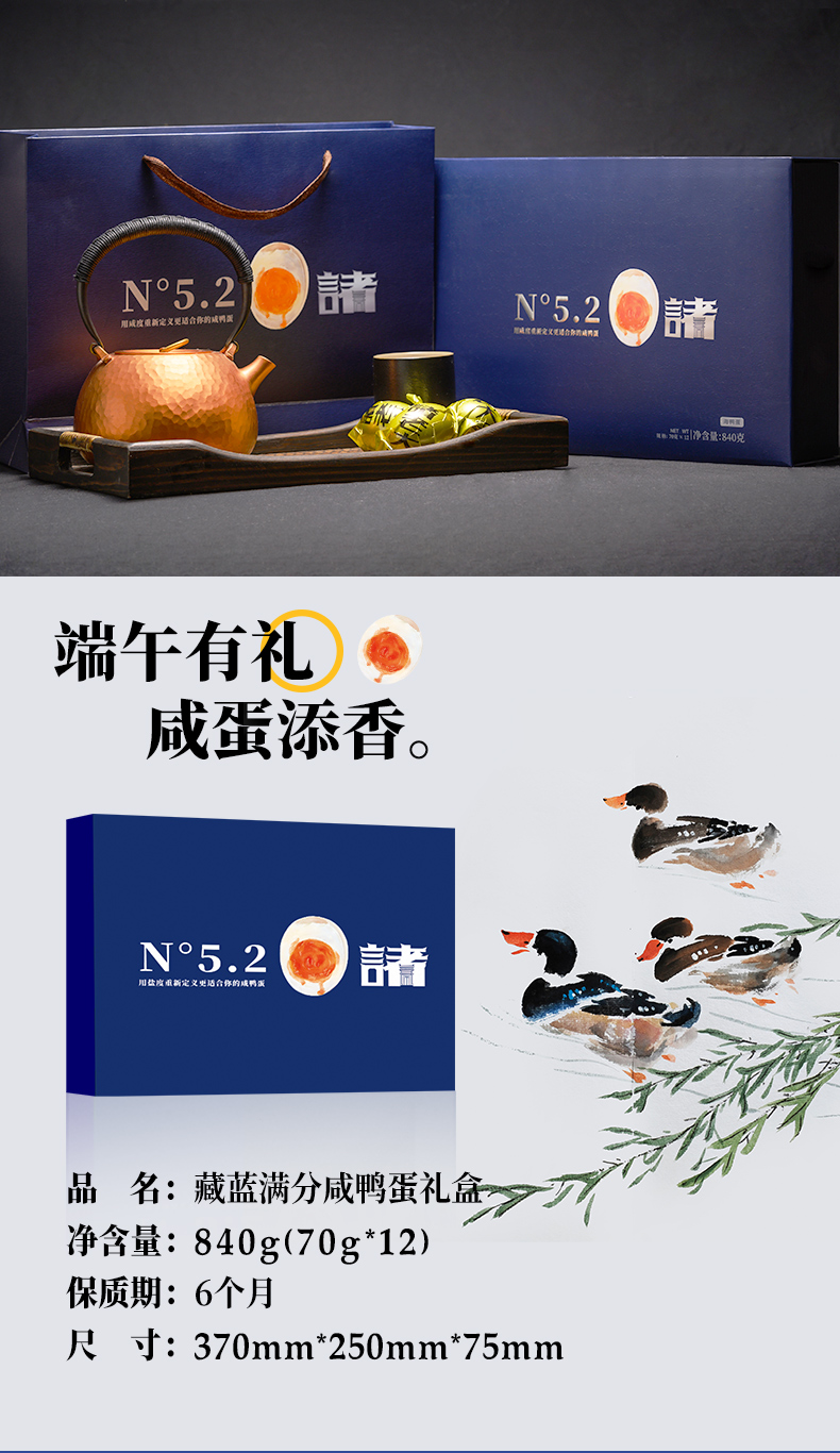 诸老大N5.2藏蓝满分咸蛋礼盒840g