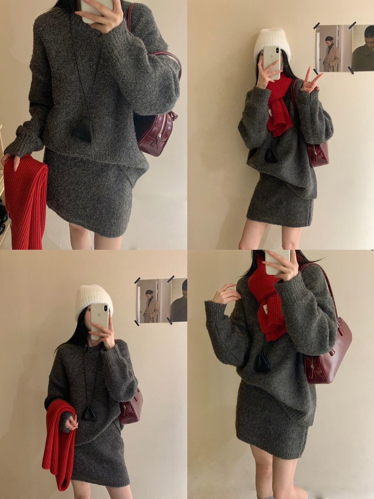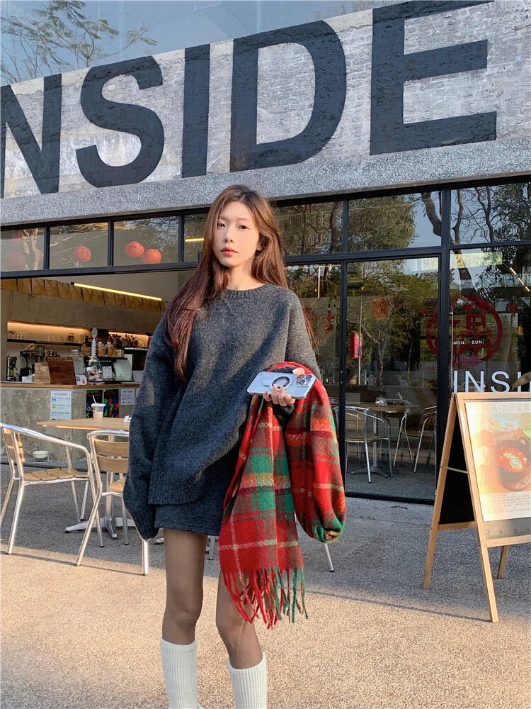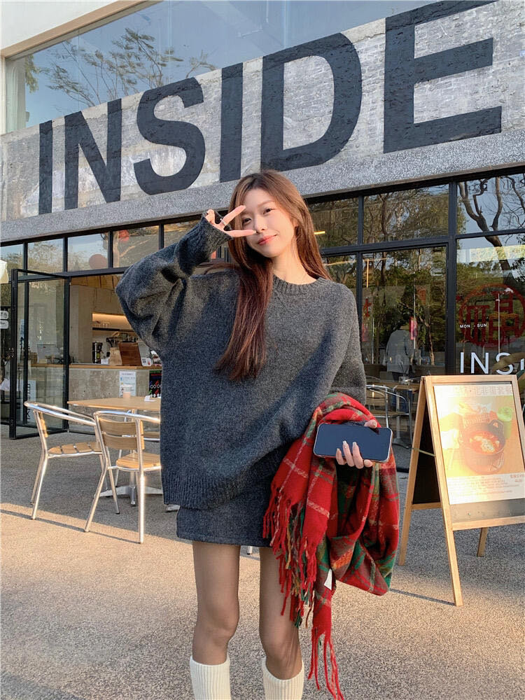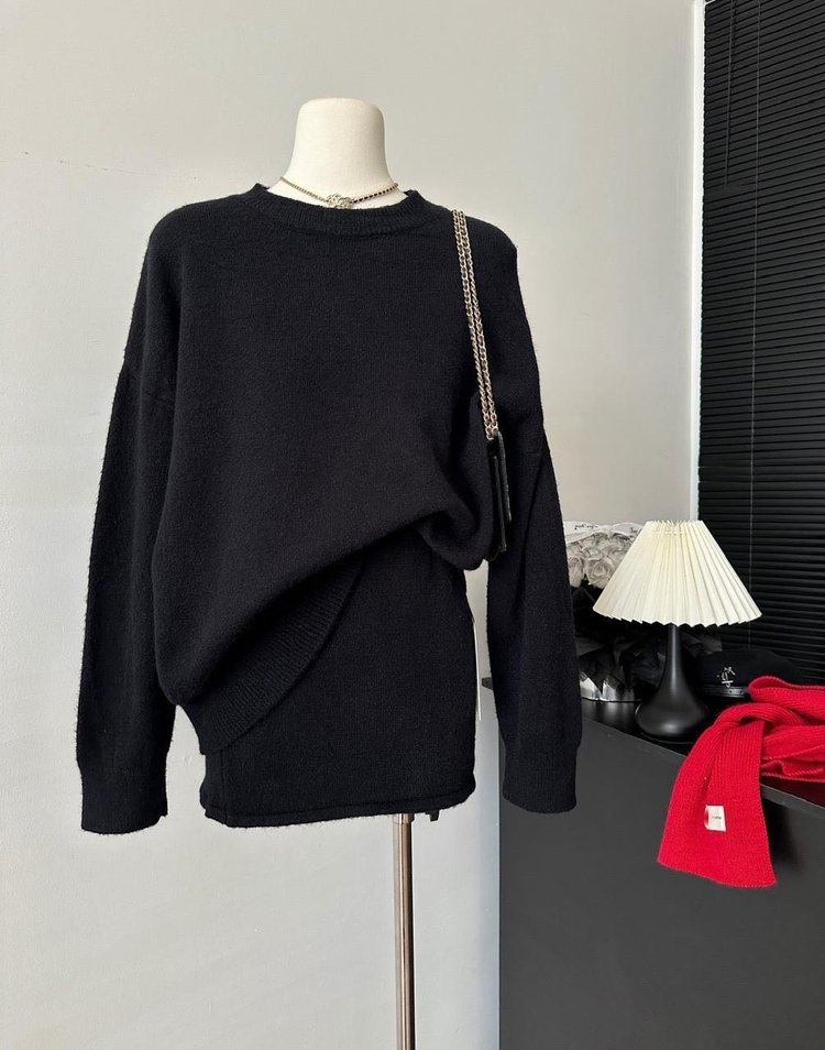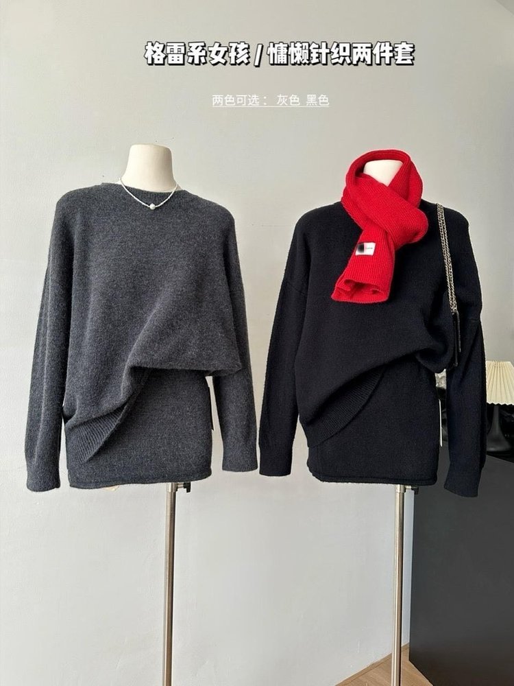 【岚束LANSHU 圆领针织套装】格蕾系女孩慵懒风感 懒人救星一套搞定 立体剪裁宽松版型 显高又显瘦