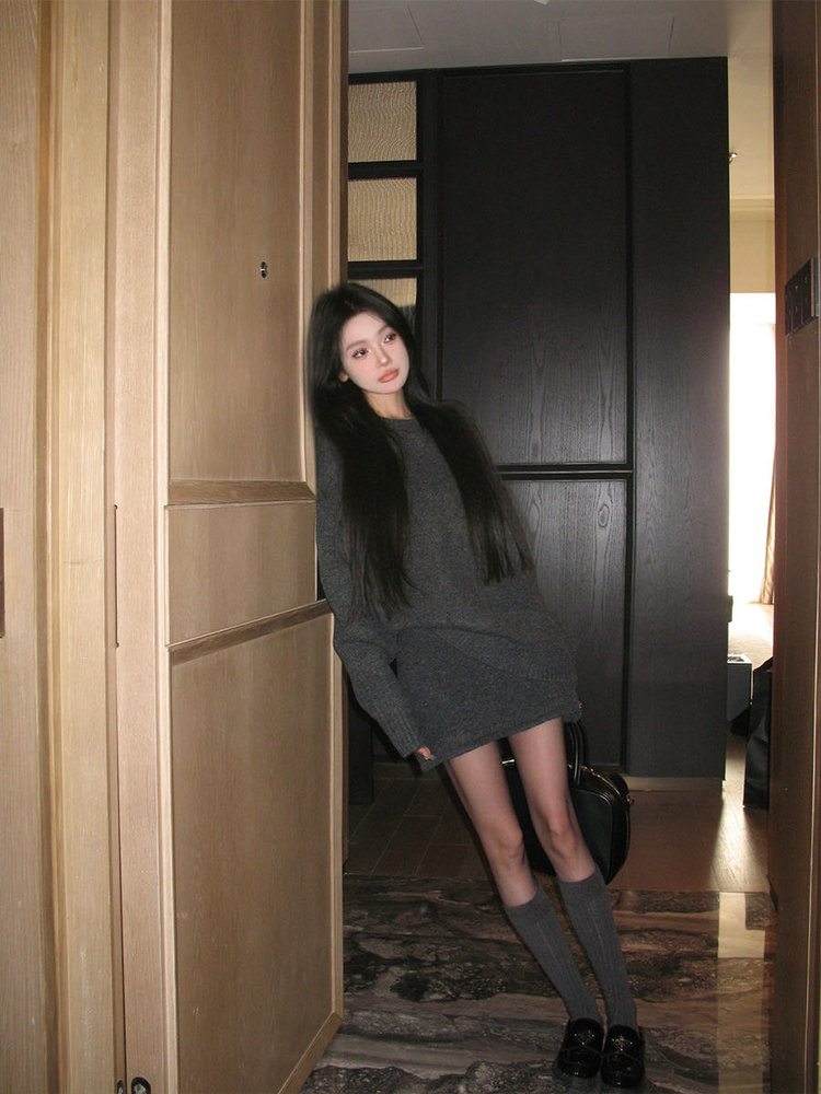 品名:岚束LANSHU 格蕾系女孩慵懒风圆领针织套装