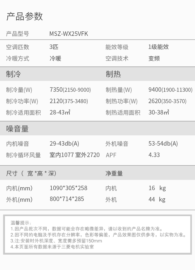 【国补15%】三菱电机WX系列3匹变频客厅空调除湿全域慧眼APP智控 MSZ-WX25VFK