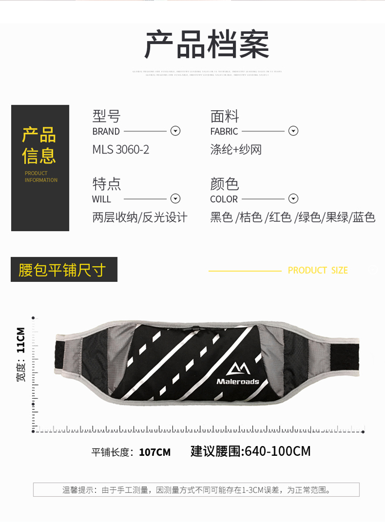 运动跑步防水腰包跑步装备男女马拉松多功能腰带健身贴身手机包
