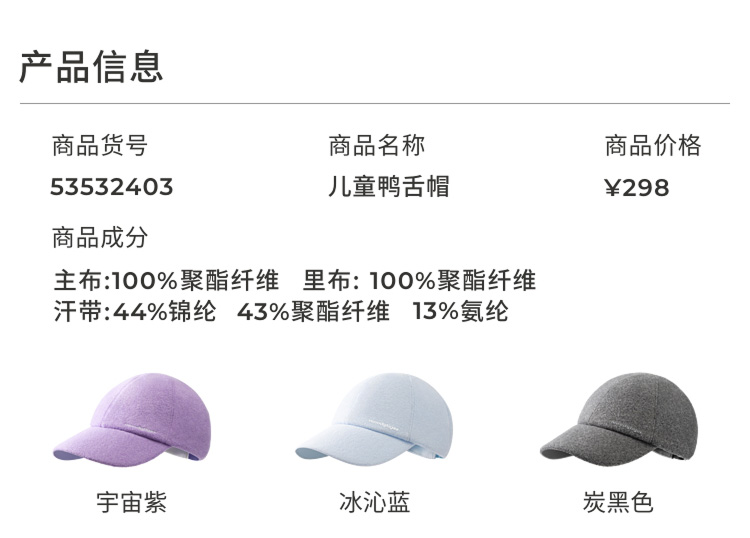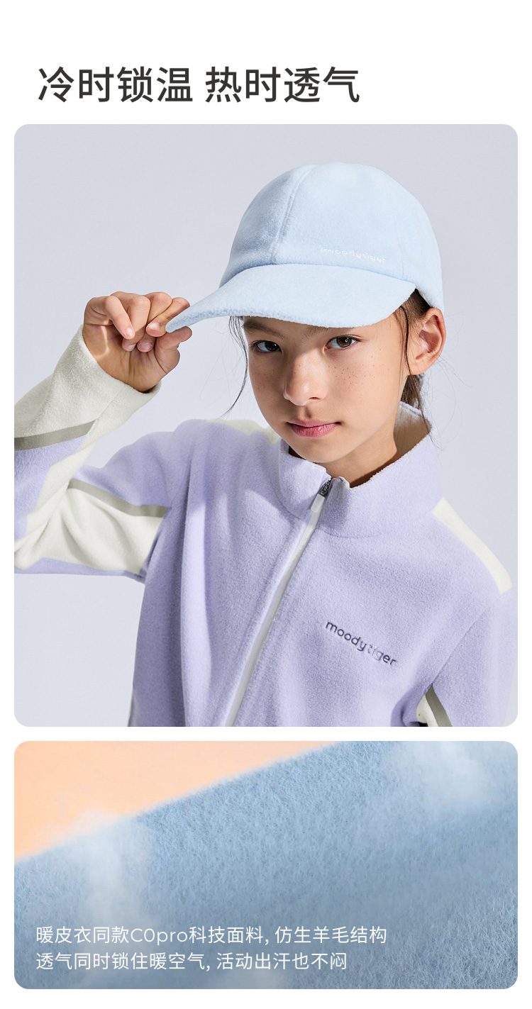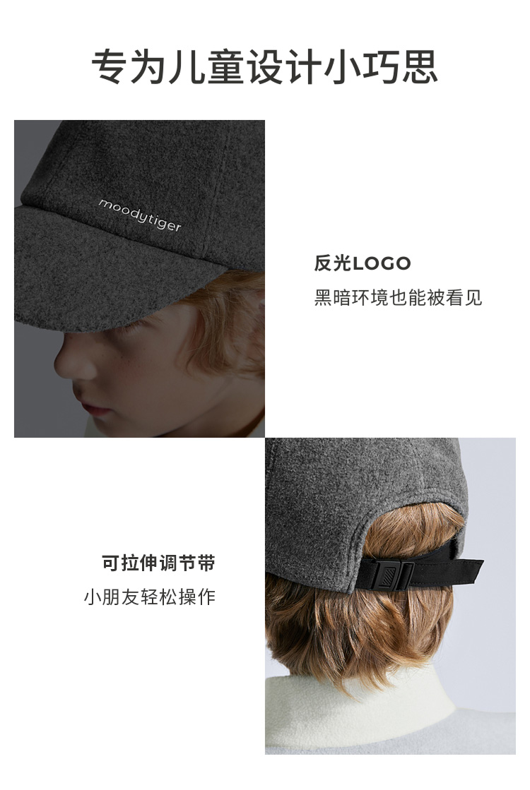 moodytiger儿童暖皮衣家族帽子锁温透气拒水鸭舌帽53532403【大J】