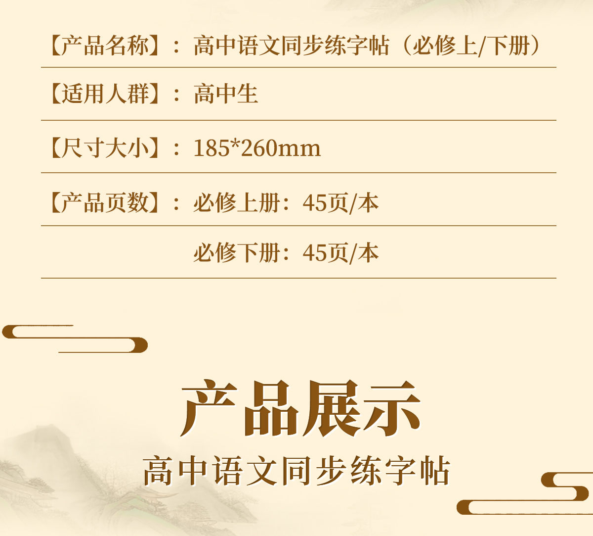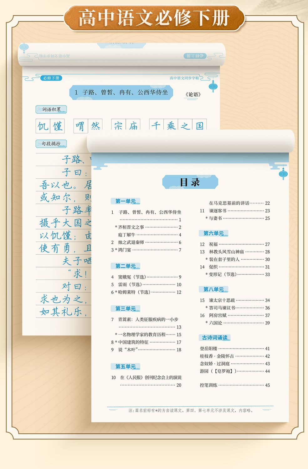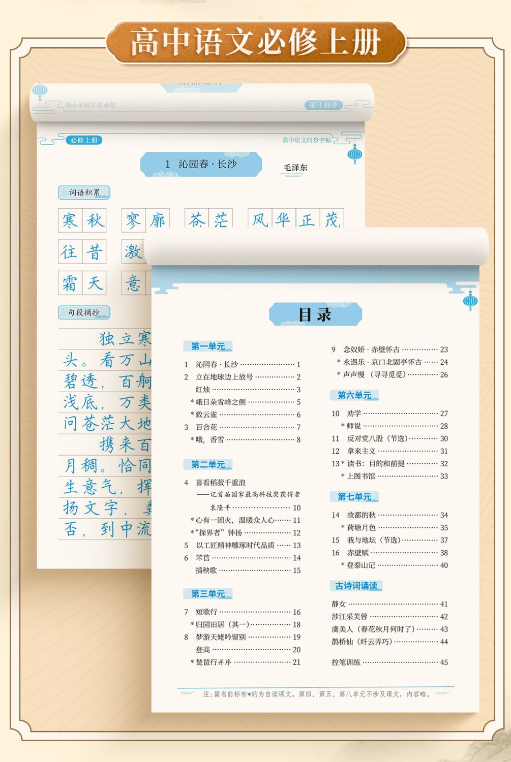 高中必修语文同步练字帖楷书人教版语文同步专用字帖高中必背古诗文上册下册文言文正楷钢笔练字每日一练贴临摹初一练习练字本