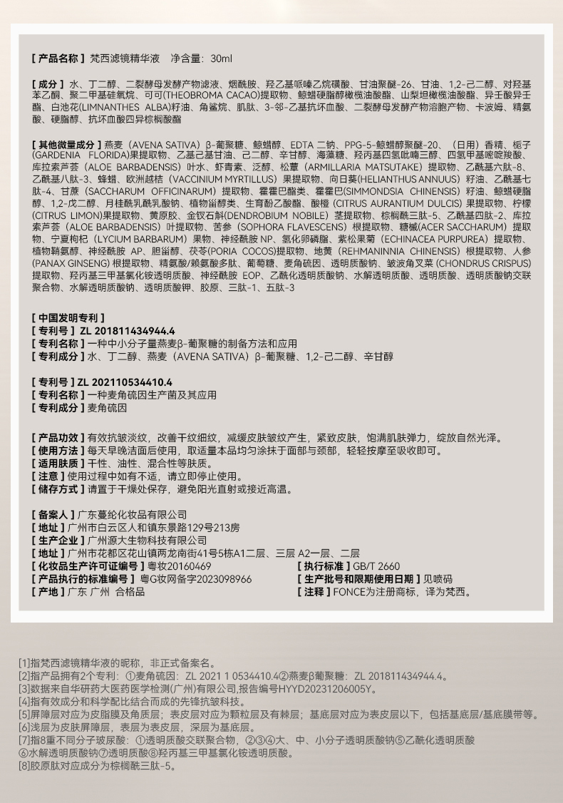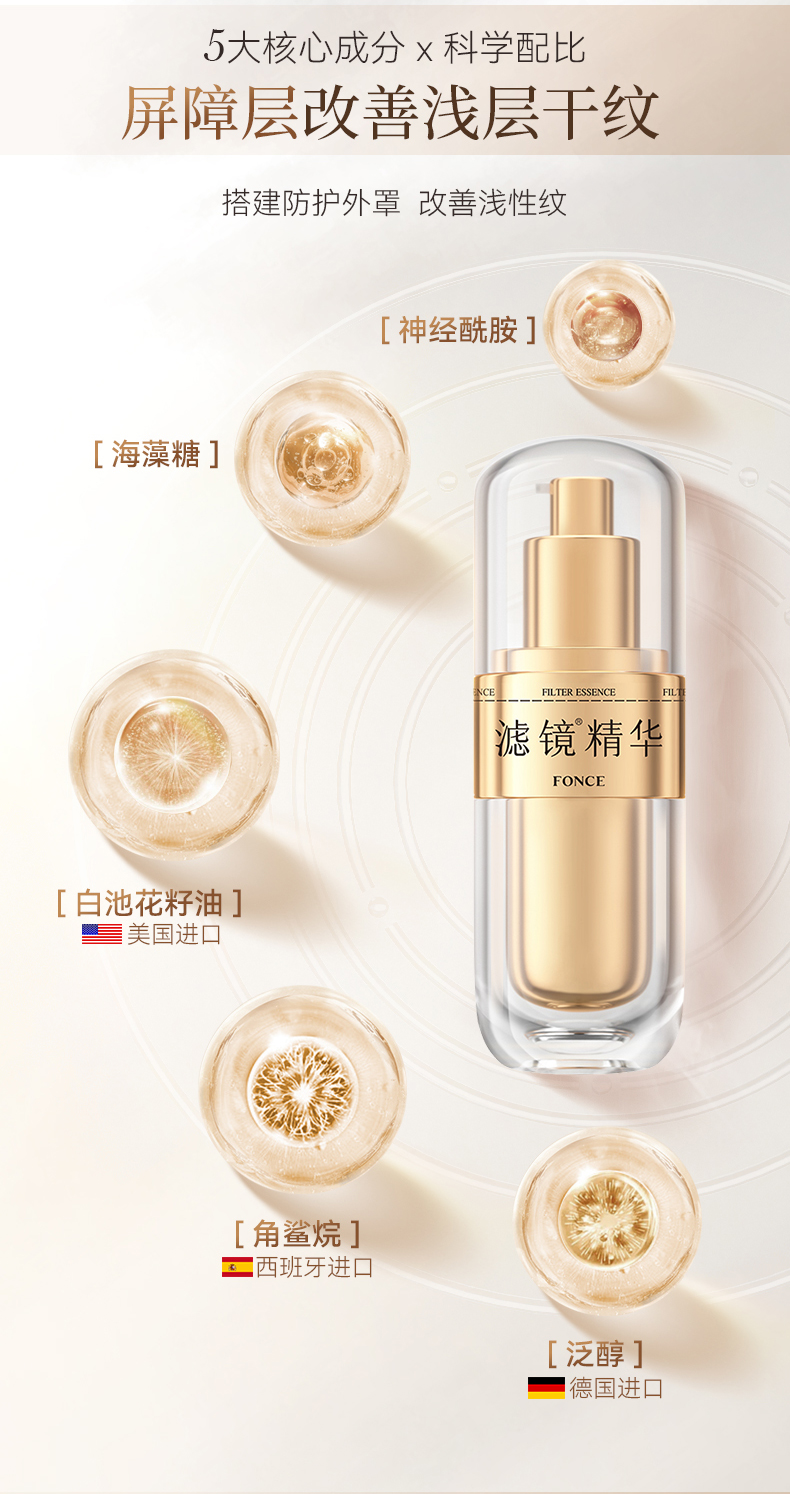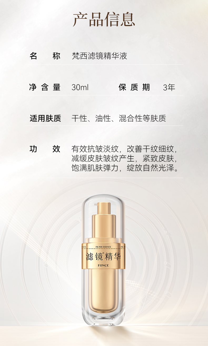 滤镜精华2.0分层抗皱紧致抗初老淡化细纹面部抗皱抗衰老FONCE梵西