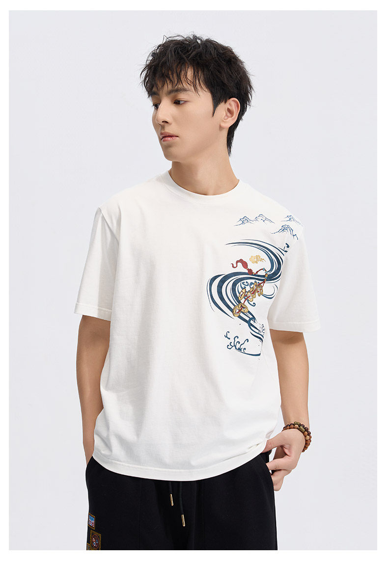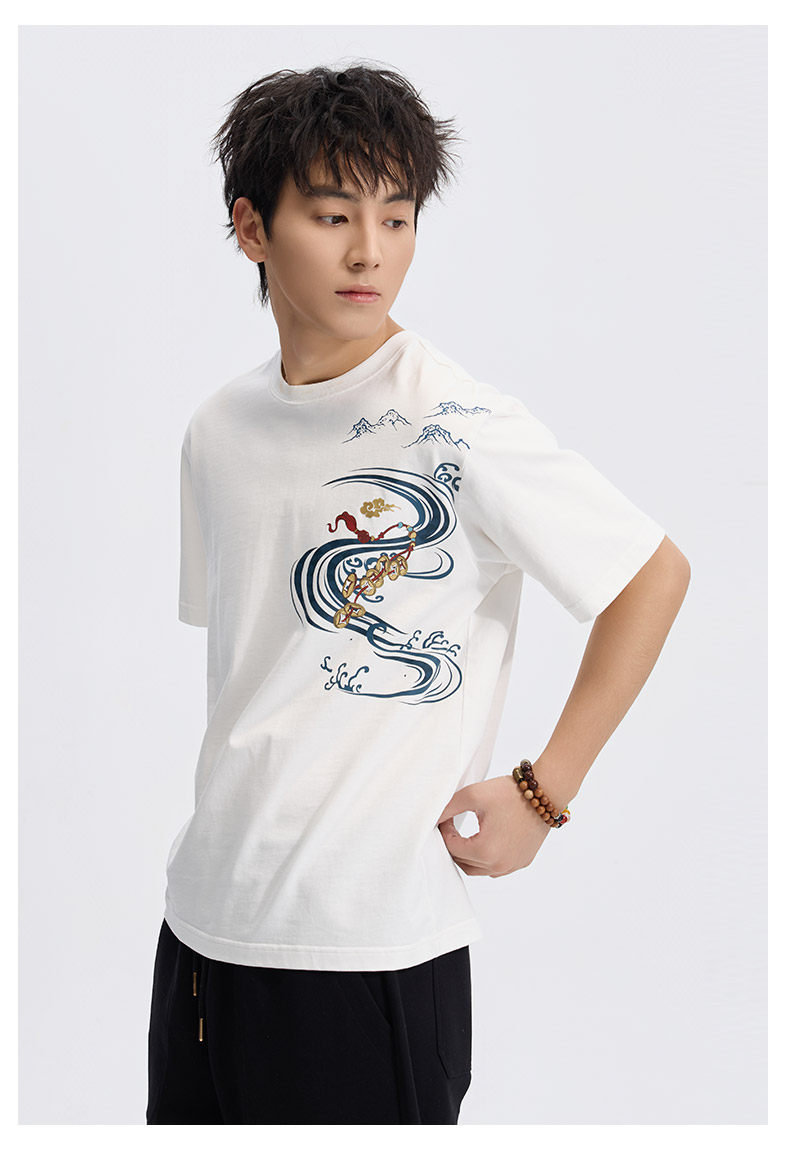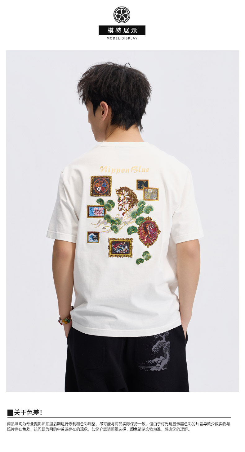 ONIARAI/鬼洗26春季新品泥棒蓝马年画框艺术短袖T恤男 26NOB31