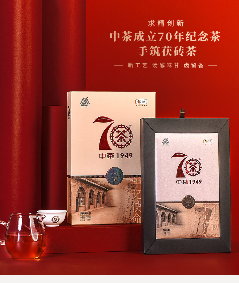 中粮中茶 百年木仓 纪念中茶成立70年手筑茯砖茶 安化黑茶700g/盒