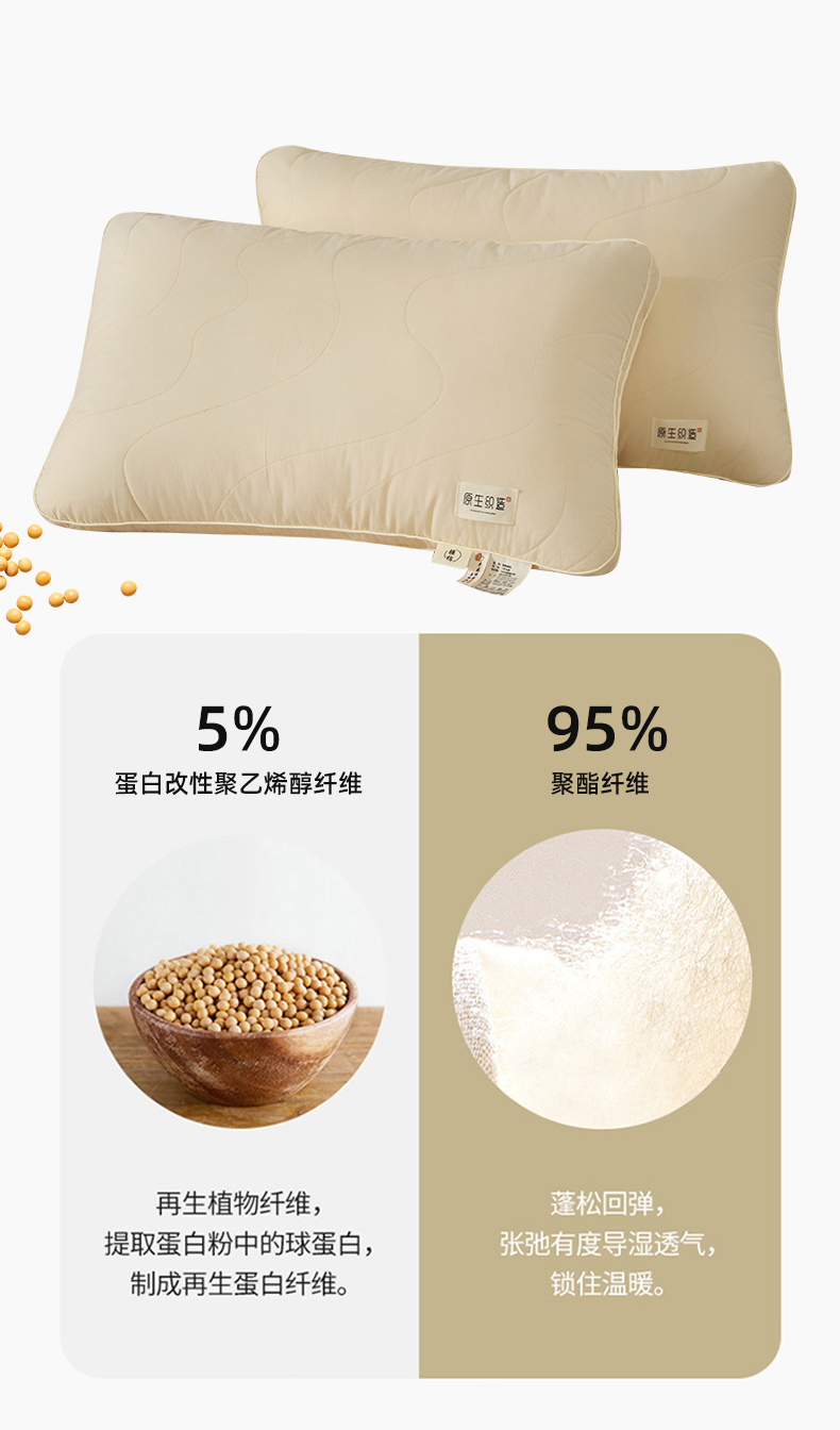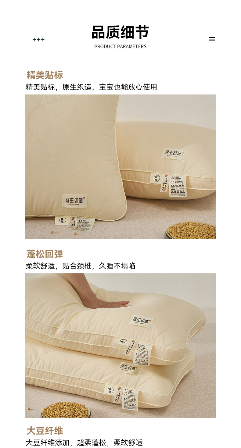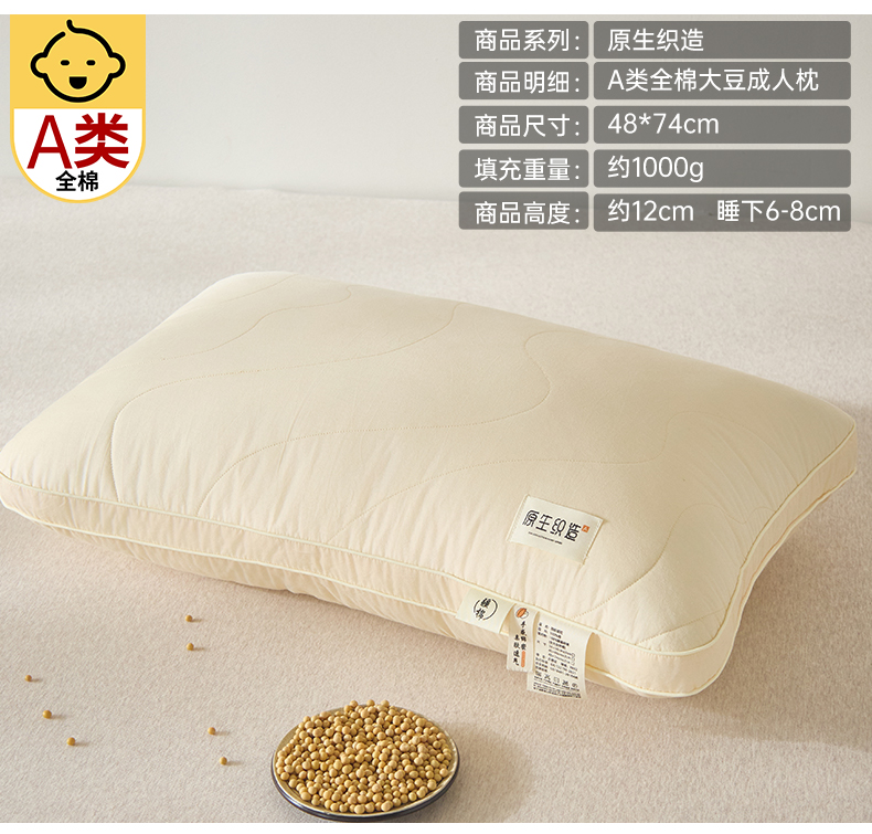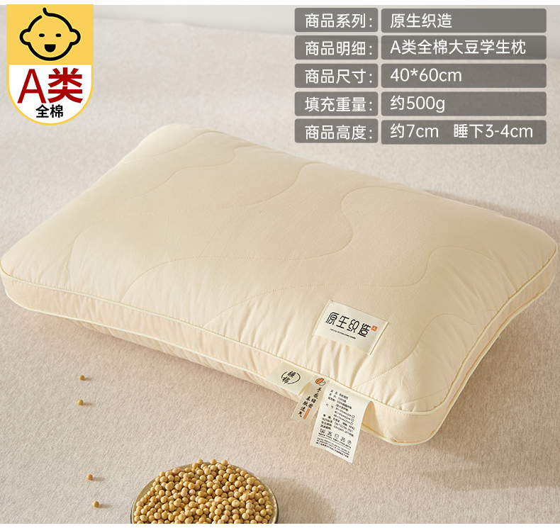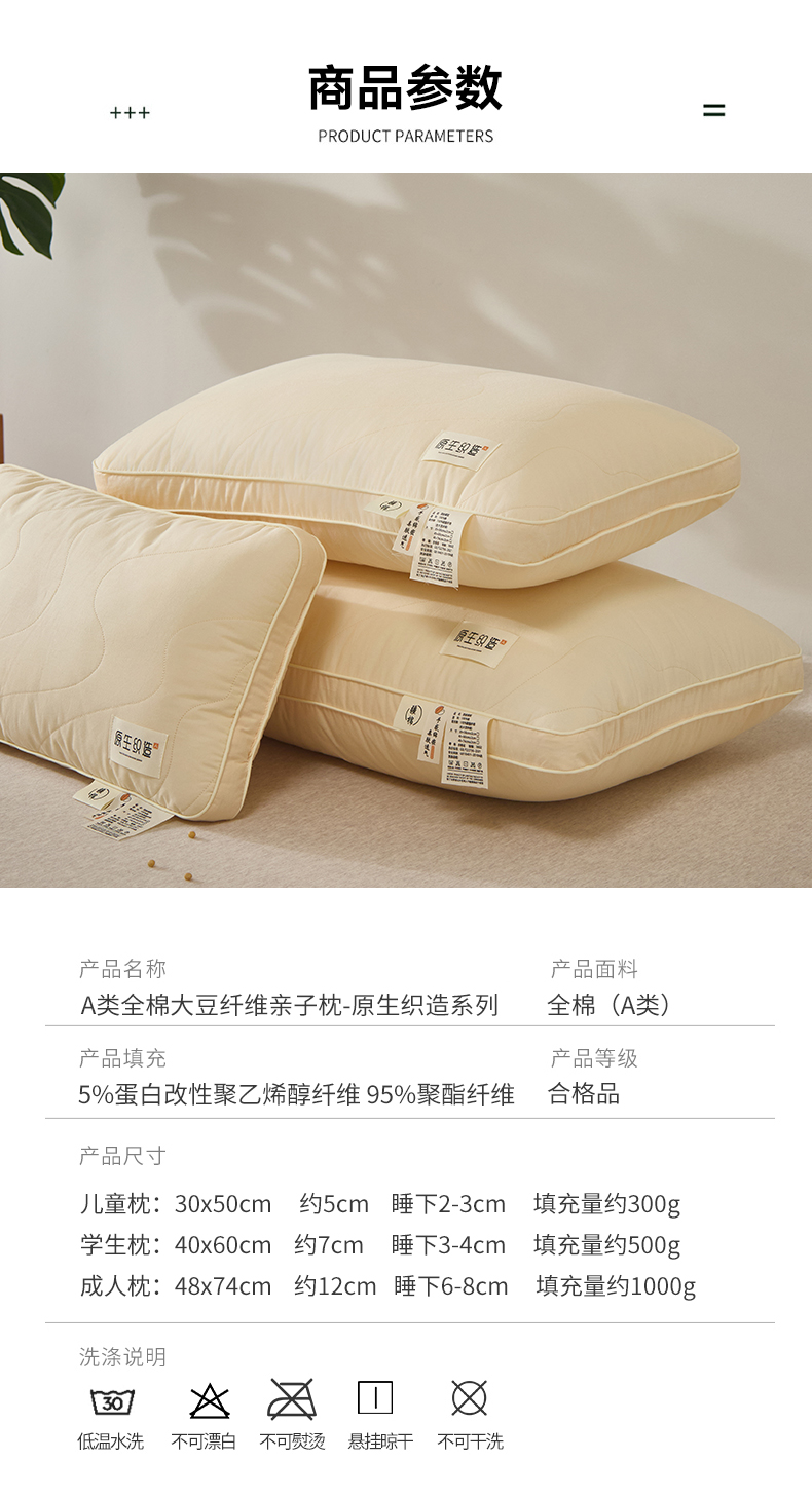 自然醒A类全棉大豆纤维亲子枕原生织造家用单人助睡眠枕头学生宿舍专用一对装XK